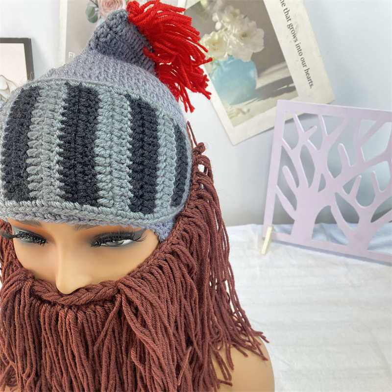 冬の保温耳保護帽子男性ローマ騎士毛糸帽子子供剣闘士マスク帽子手作りニット男性帽子