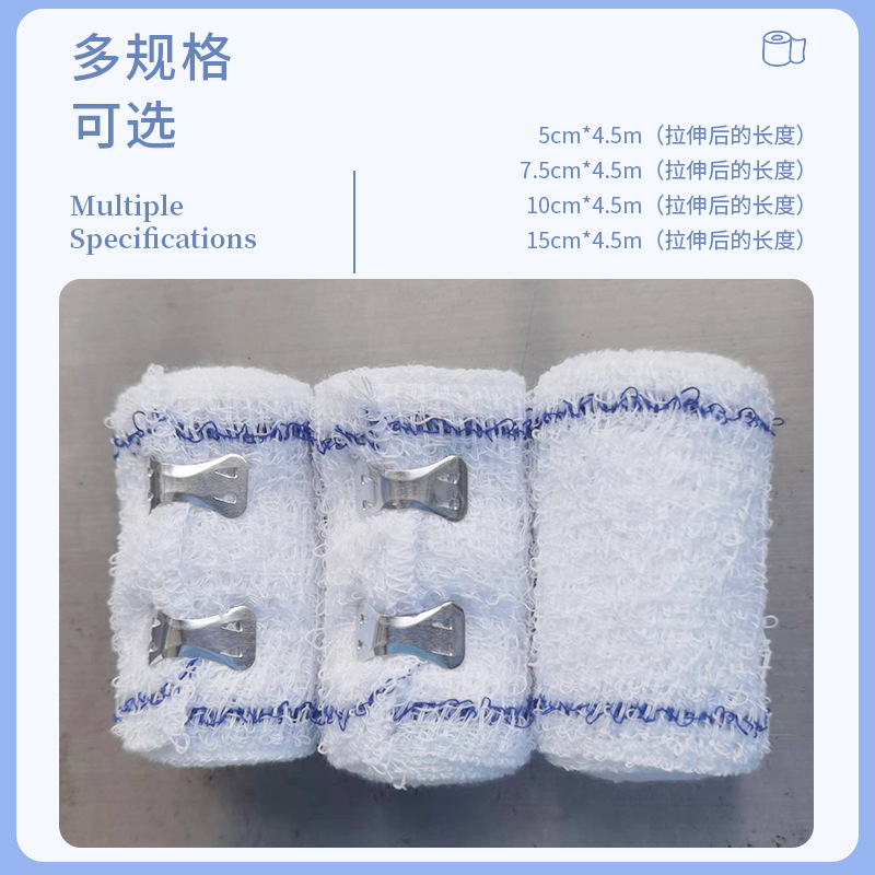 工場半製品70グラム裸巻きブルーラインしわ弾性包帯簡単綿皮膚医療用骨科弾力包帯