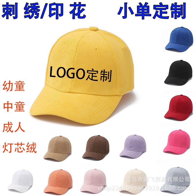 儿童灯芯绒棒球帽光板遮阳帽小学生活动帽定制刺绣鸭舌帽子亲子款