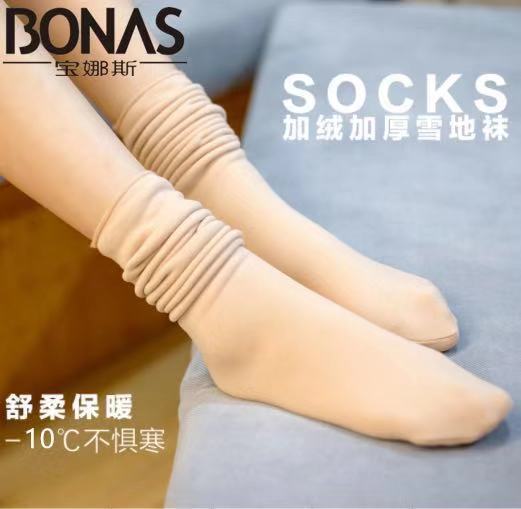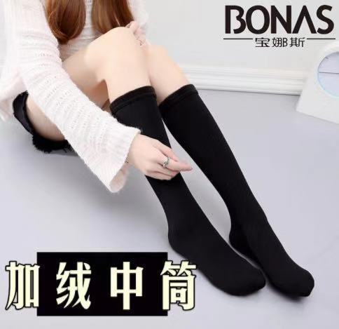 宝娜斯秋冬卸売り日系学院風加毛保温中筒靴下と膝靴下の雪地靴下