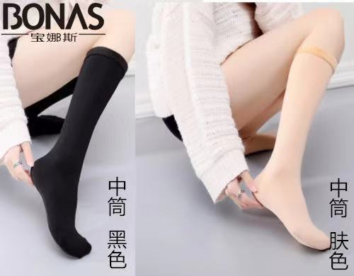 カラー ボナースベルベット中筒靴下黒,ボナースとベルベットのストッキングの肌の色