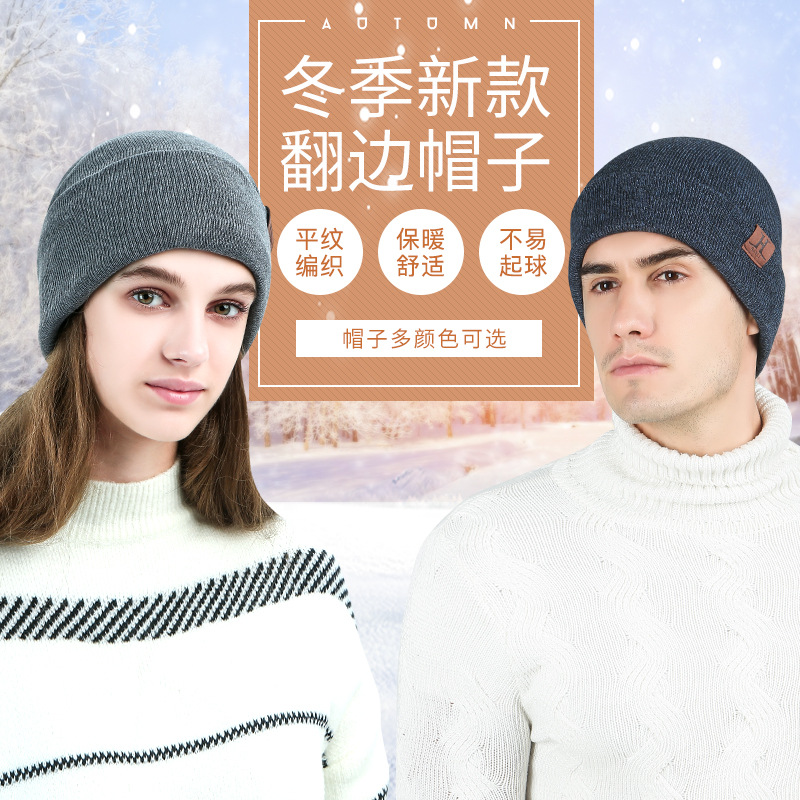 2023秋冬新品レディース保温ニット帽純色メンズファッションフリップキャップ帽子私定卸