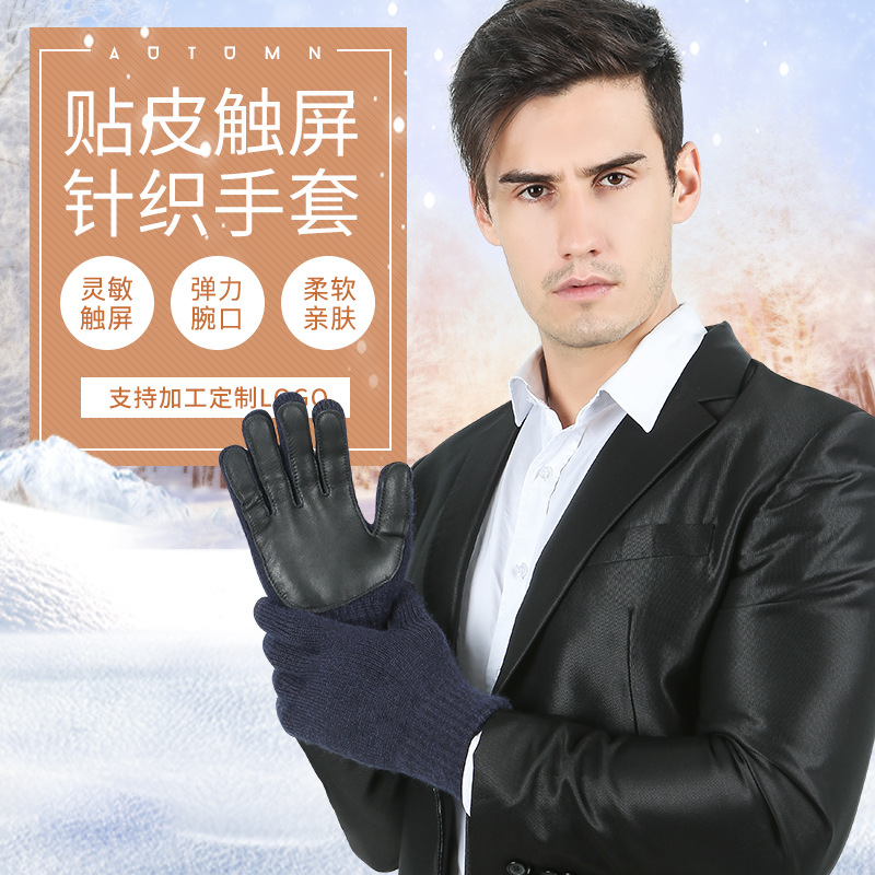 爆金戸外騎行男性毛糸タッチパネル手袋冬ベルベット保温ニット手袋カスタム卸売り