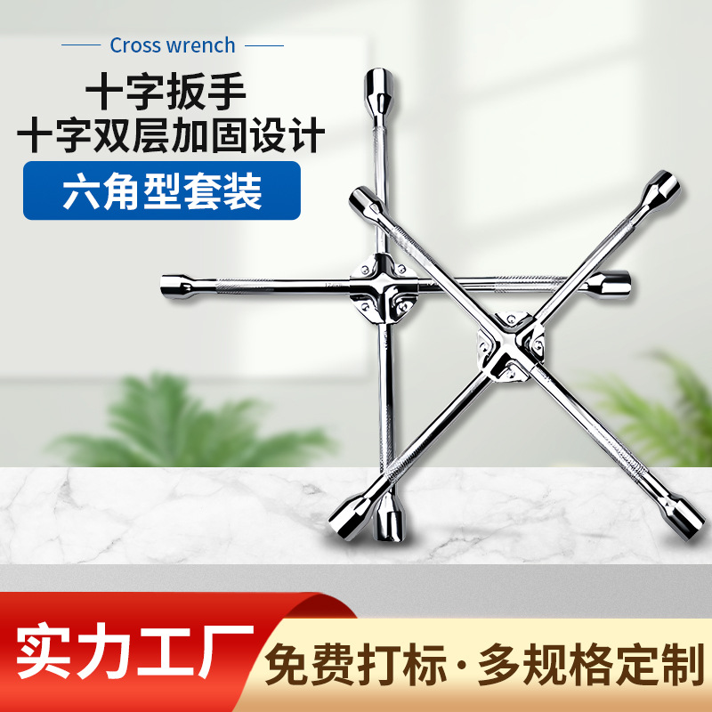 跨境十字轮胎扳手套筒扳手汽车维修换胎拆卸工具外六角套筒扳手
