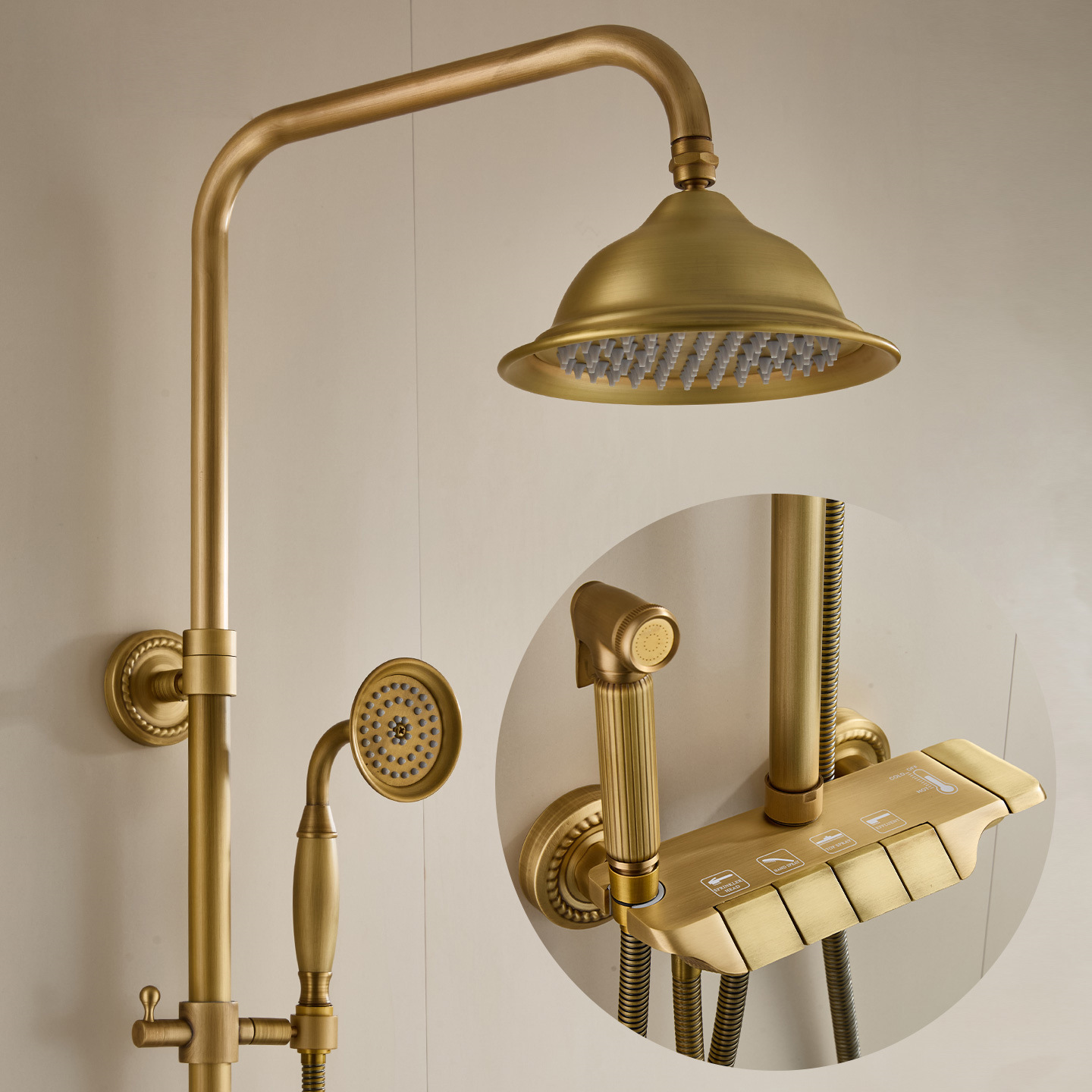 北欧の軽い豪華な真鍮のシャワーの花こぼれセットの復古的な冷熱の雨のシャワーはスプレーガンの増圧婦の洗濯器を持っています。