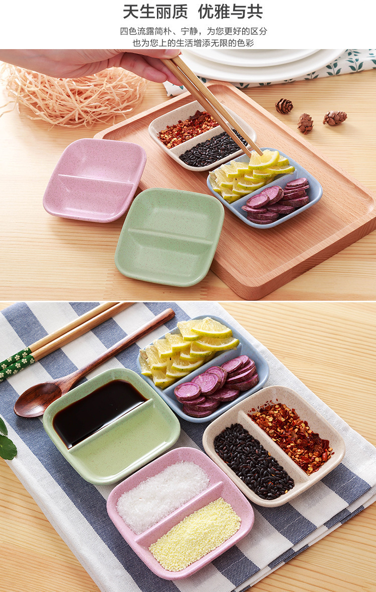 創意的な小麦わら調味皿日本式味噌調味料漬け物軽食小皿酢皿仕切り小皿
