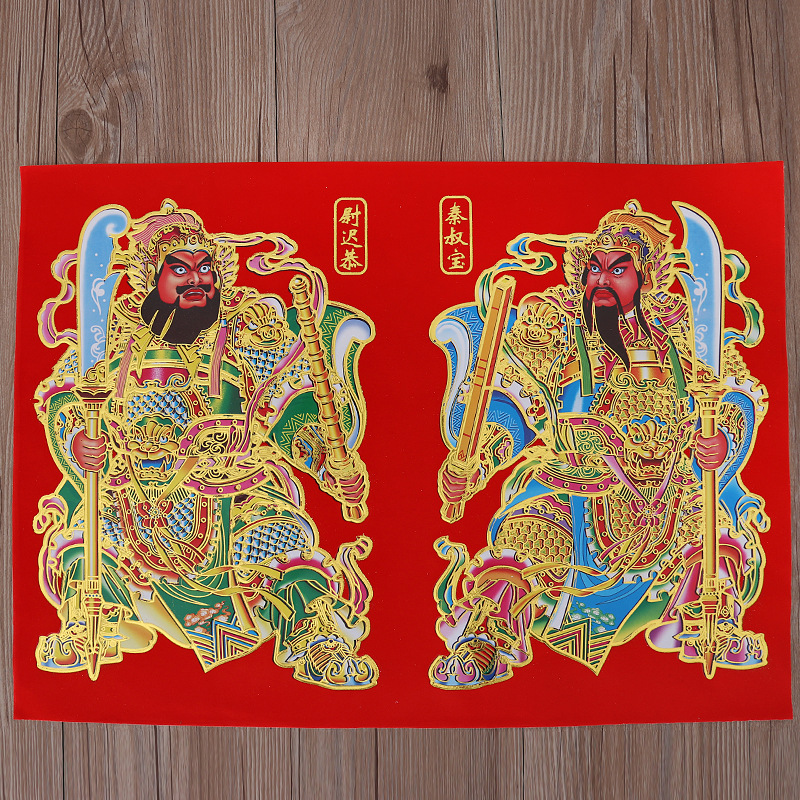 新年用品春節門画植毛門神正月関羽張飛関公門貼尉遅恭秦叔宝年画