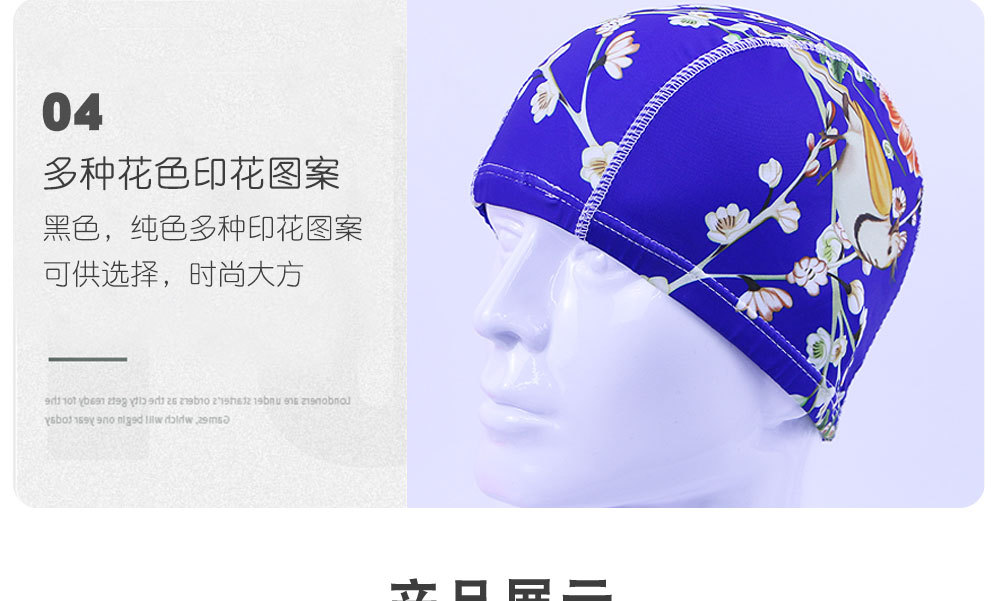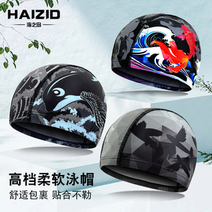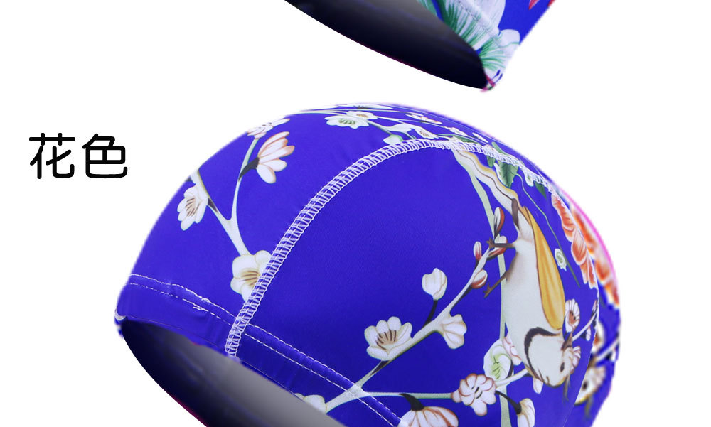 メーカー直販水泳帽新型花布帽現物卸売り速乾ファッション模様ニット水泳帽水泳帽