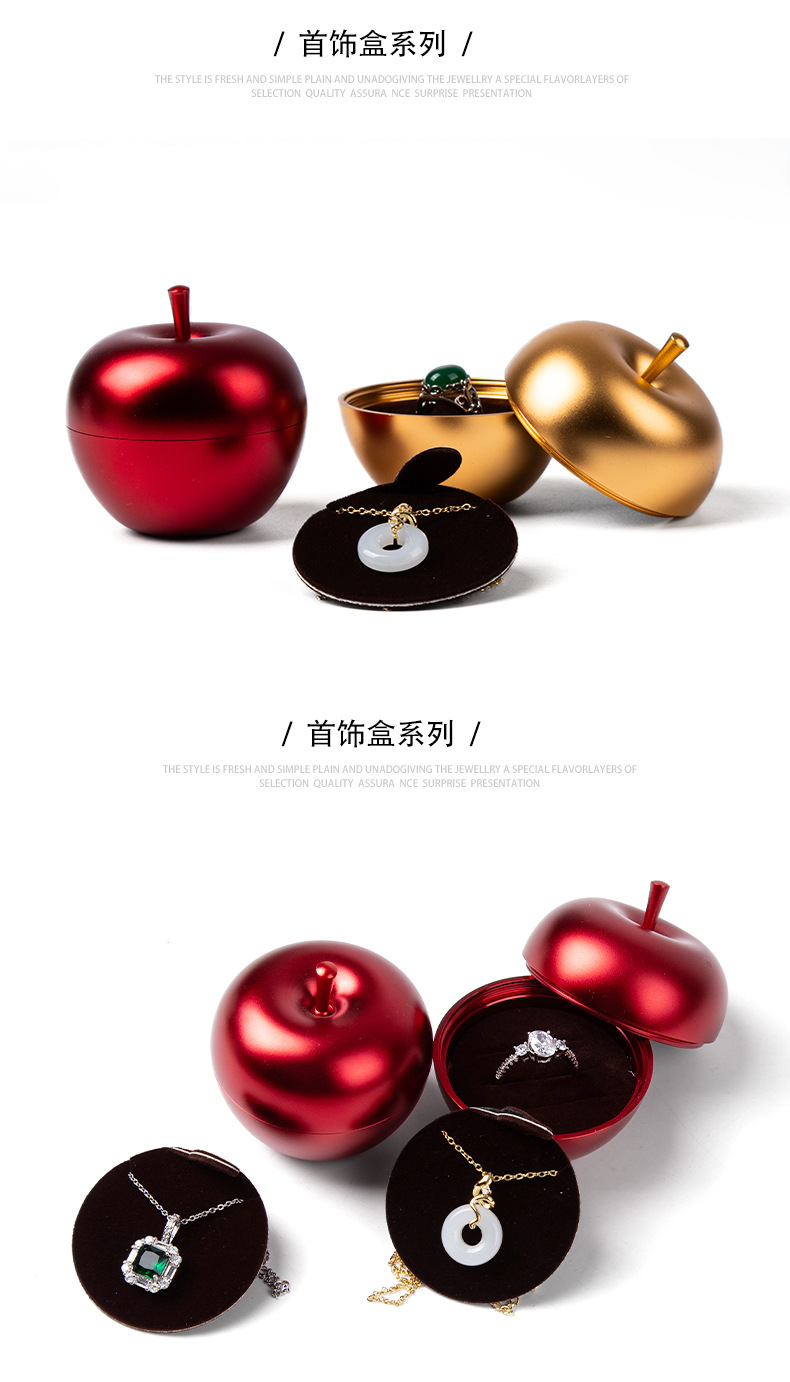 金属製クリスマスアップル型ジュエリー包装箱、ジュエリー包装箱、指輪、ネックレス、ペンダント用ボックス、クリエイティブなギフトボックス