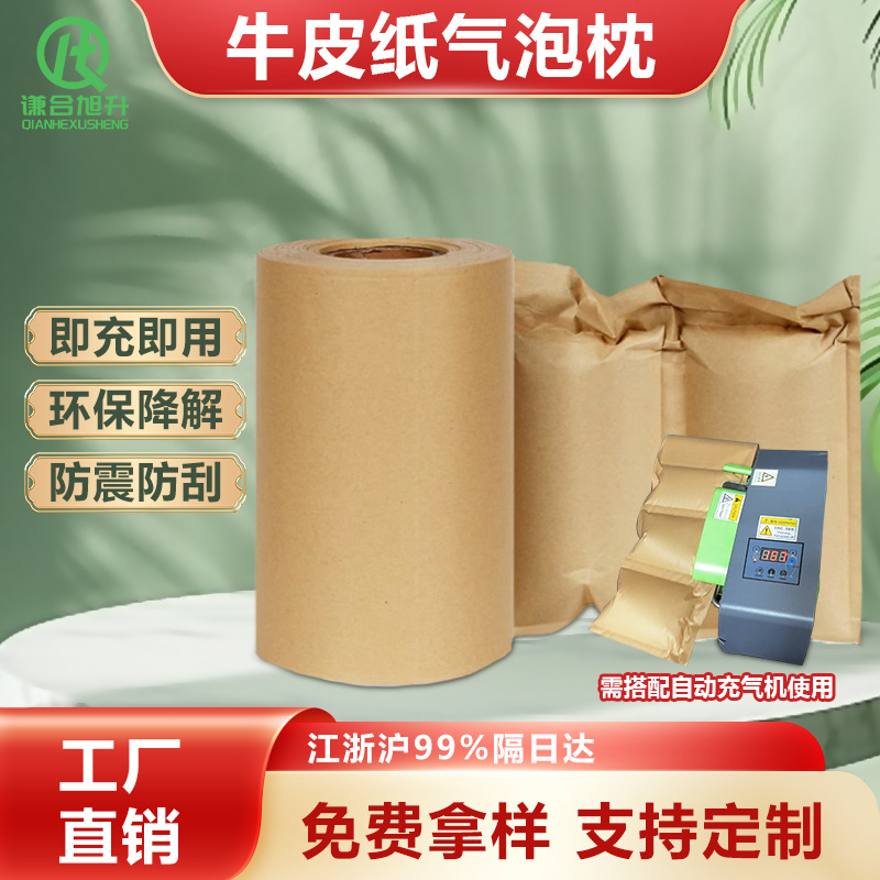 分解性クラフト紙バブル枕 Qianhe 環境に優しいインフレータブルコーティングエクスプレス特殊バブルコラムインフレータブル緩衝包装
