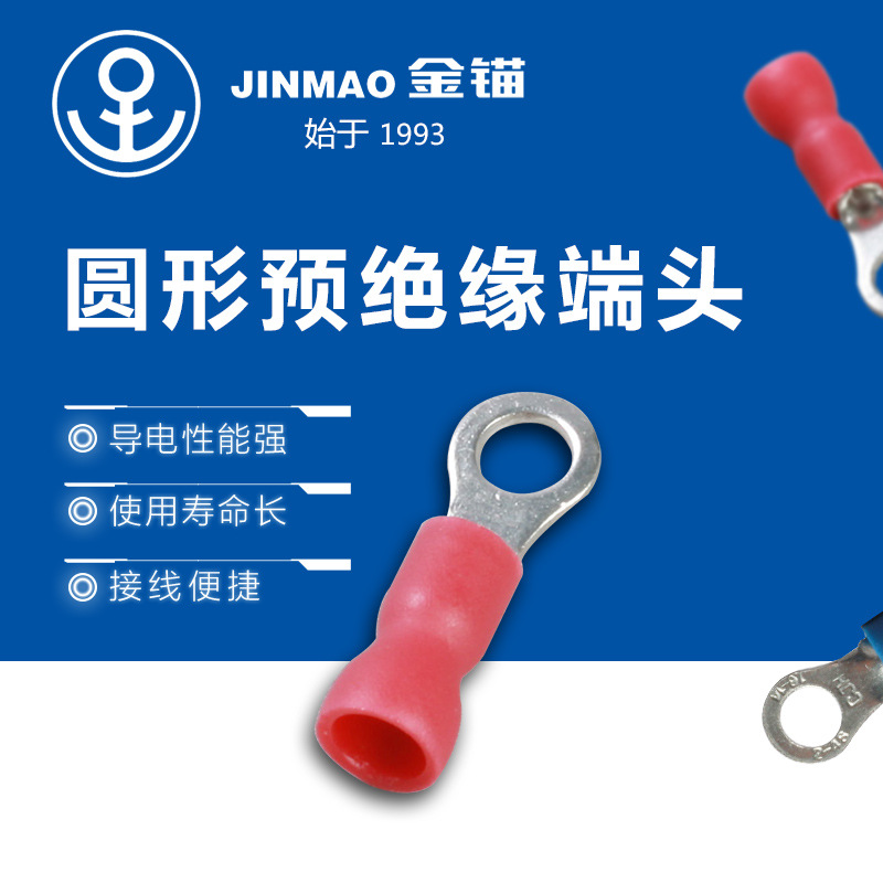 金錨メーカーは円形予備絶縁冷圧端子RV-E o型配線銅線鼻付きカバーヘッドを供給しています。