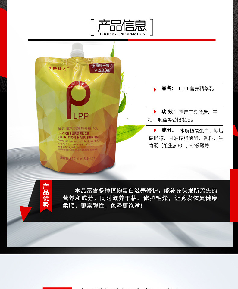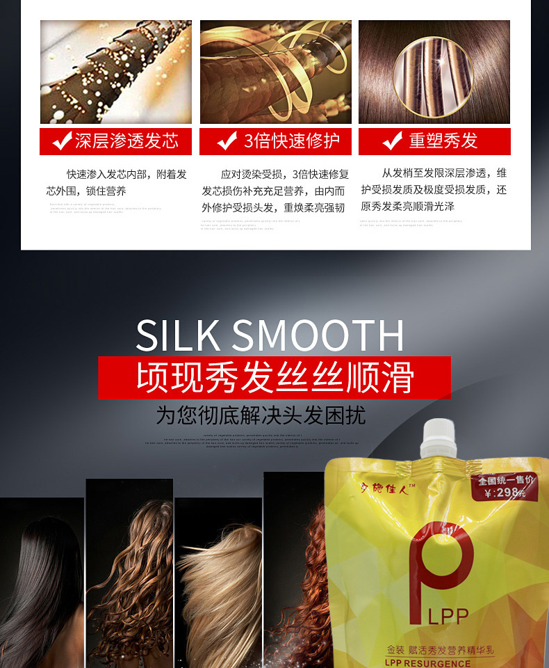 瑛派児金装lpp栄養発膜皮質充填精華乳理髪店専用spa水治療素リンス