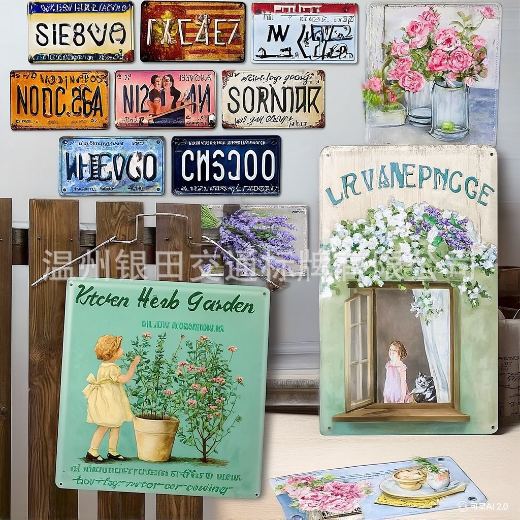 メーカーはアメリカの復古をカスタマイズして古いアルミニウムの鉄の皮を作ってナンバープレートの円形の田園の壁を描いて空白の板を飾って注文します。
