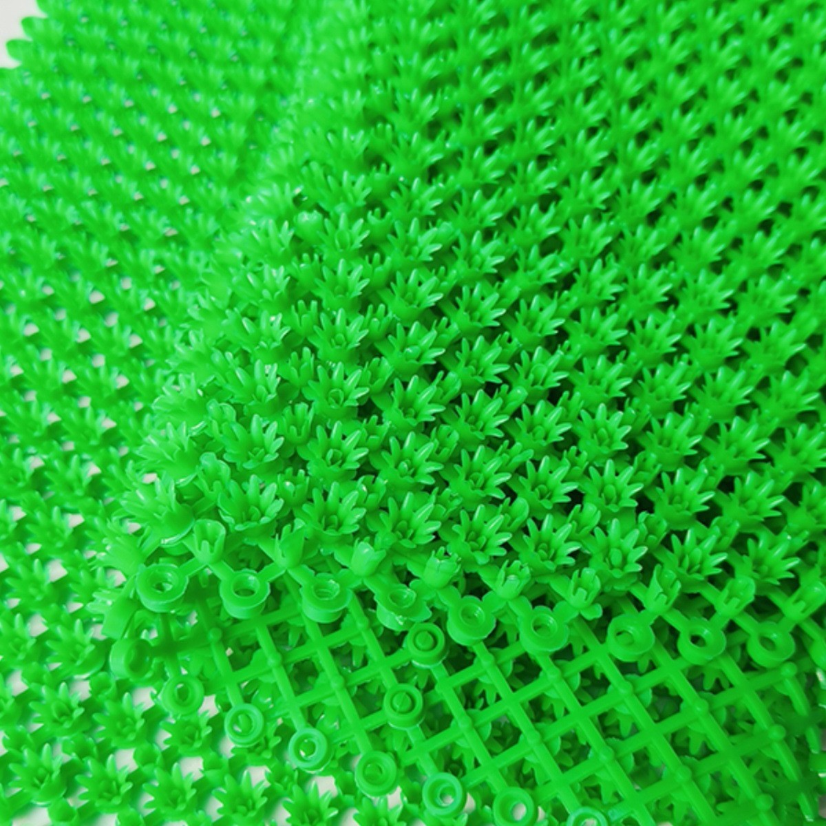 优点:色彩鲜艳,材质易于清洗,耐磨、有弹性。优质隔水塑料地垫、专业的仿草地垫,采用进口3M设计,能有效隔尘、隔水,防水,清洗也很方便,用水冲一冲,适用于入海鲜池旁、水果台旁、户门或阳台等。