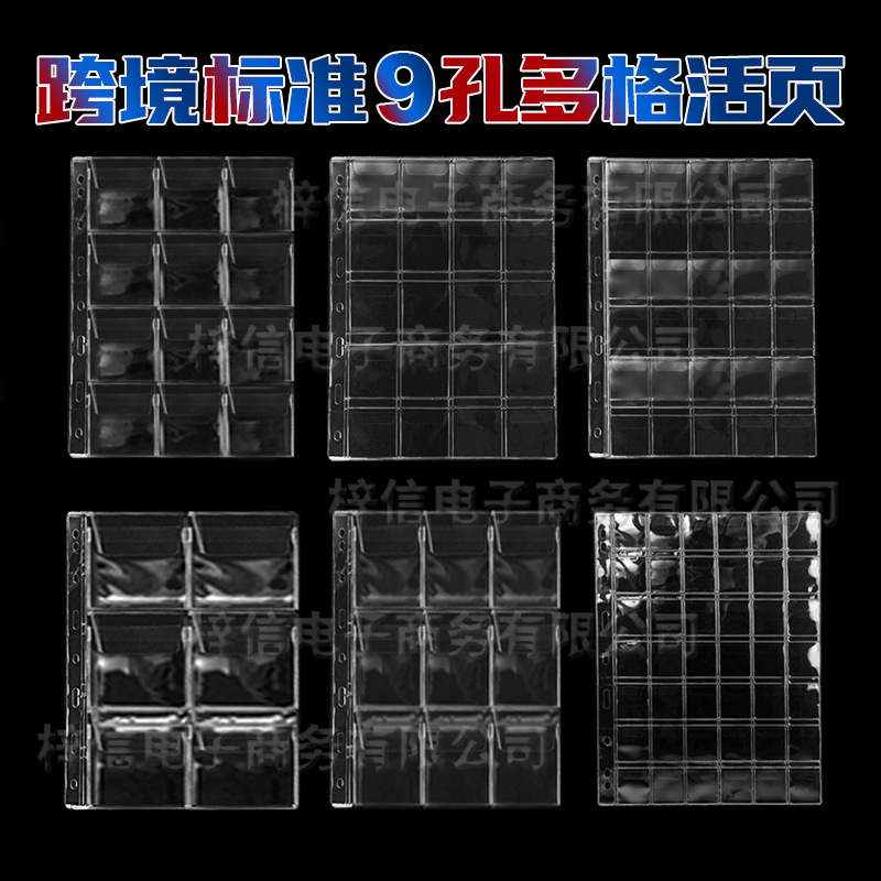 硬貨コレクションアルバム、ルーズリーフ式硬貨収納ボックス、9穴片面透明、6グリッド、9グリッド、12グリッド、20グリッド、30グリッド、42グリッド