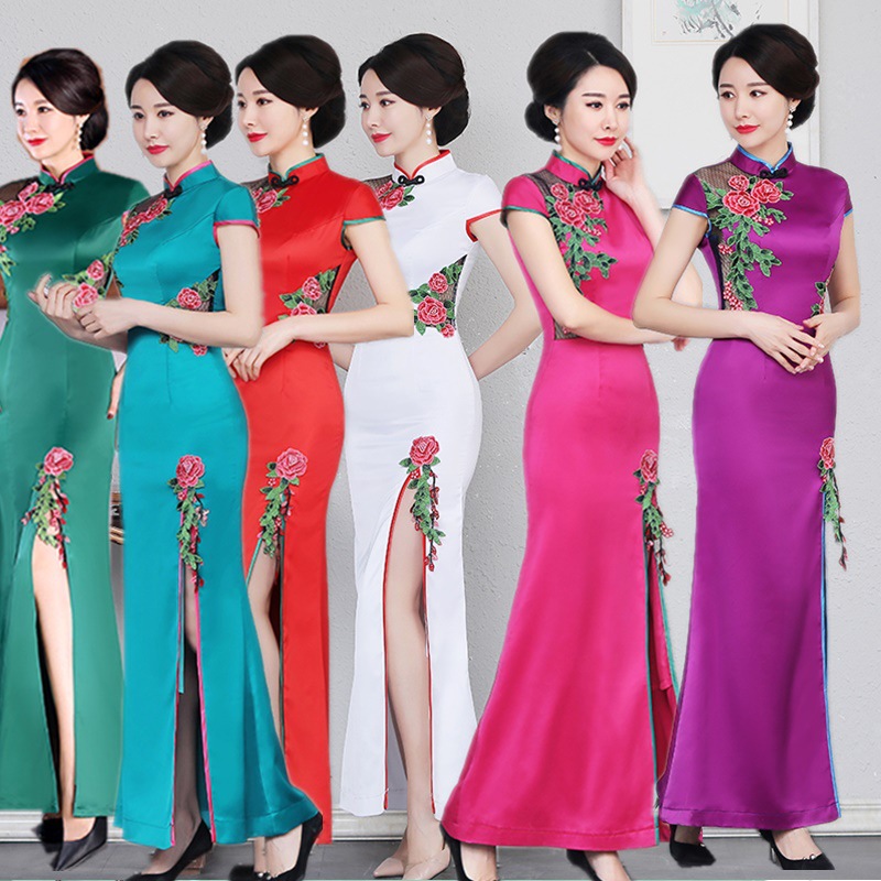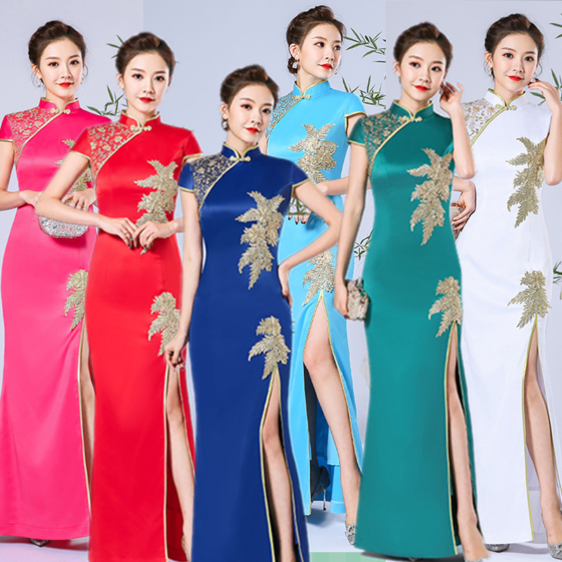 ショーのチャイナドレスの公演服2022新商品の長いタイプのショーのマナーホテルの迎賓の舞台の服装の大きいサイズのフォークの女性