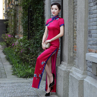 キャットウォークチャイナドレス肥厚高弾性ロングスタイル2025新しいハイスリットスリムチャイナドレス中国風のエレガントな気質
