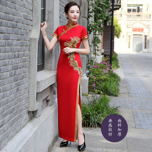 敬酒服花嫁2022新型赤いロングタイプのレトロ改良スリムチャイナドレス