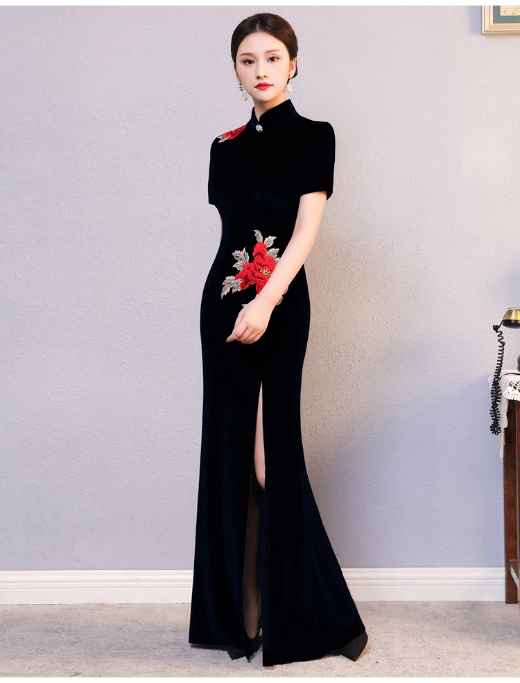 マナーチャイナドレス秋冬2022新作女性の端正な雰囲気ファッションオープンパーティーの長い舞台ショーの衣装