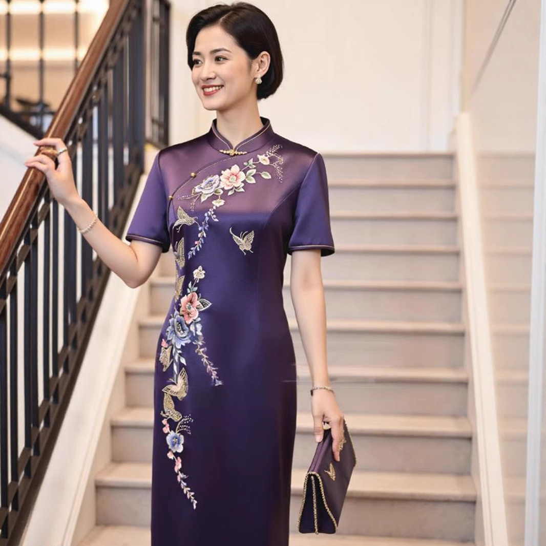 高級軽量高級母親の結婚式披露宴ドレス2025新作アセテート控えめでエレガントな母親のチャイナドレス結婚式ドレス夏