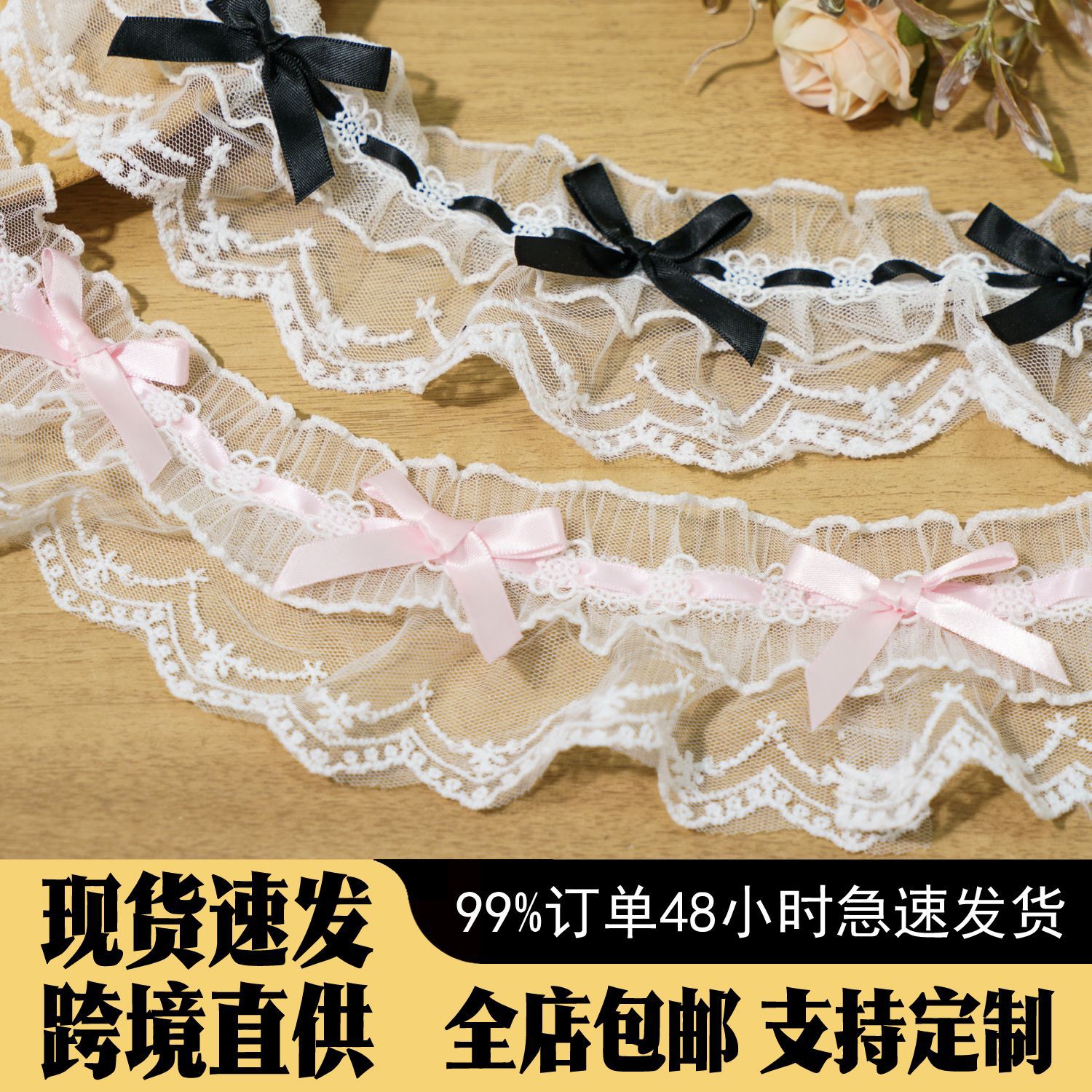 网纱双层立体蝴蝶结花边洛丽塔裙子衣领袖口百搭装饰蕾丝花边辅料