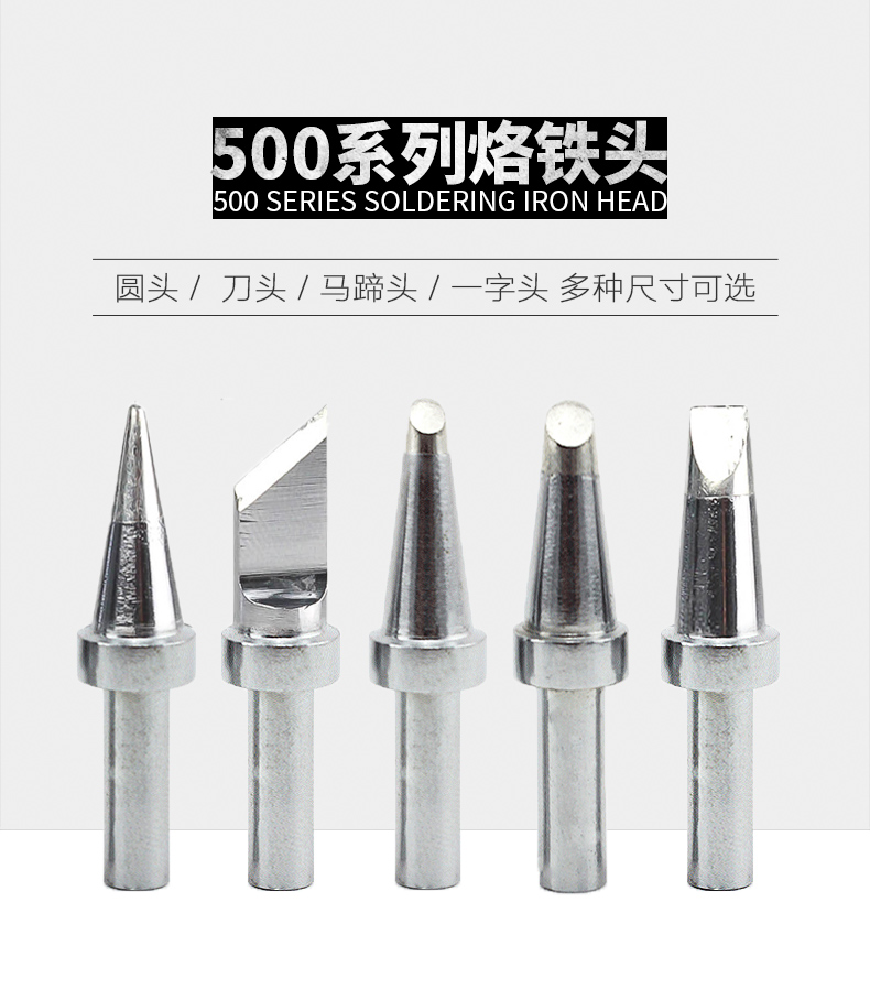 型番 500-kこてヘッド (大刃),500-skはんだごてヘッド (ナイフヘッド),500-bはんだごてヘッド (丸頭),500-2bはんだごてヘッド (丸頭),500-3cアイロンヘッド (馬蹄ヘッド),500-4cアイロンヘッド (馬蹄ヘッド),500-5cアイロンヘッド (馬蹄ヘッド),500-6cこて先 (馬蹄頭),500-8cはんだごてヘッド (馬蹄ヘッド),500-2.4dこてヘッド (一字),500-3.2dこてヘッド (一字),500-4dこてヘッド (一字),5005-dこてヘッド (一字),500-2c
