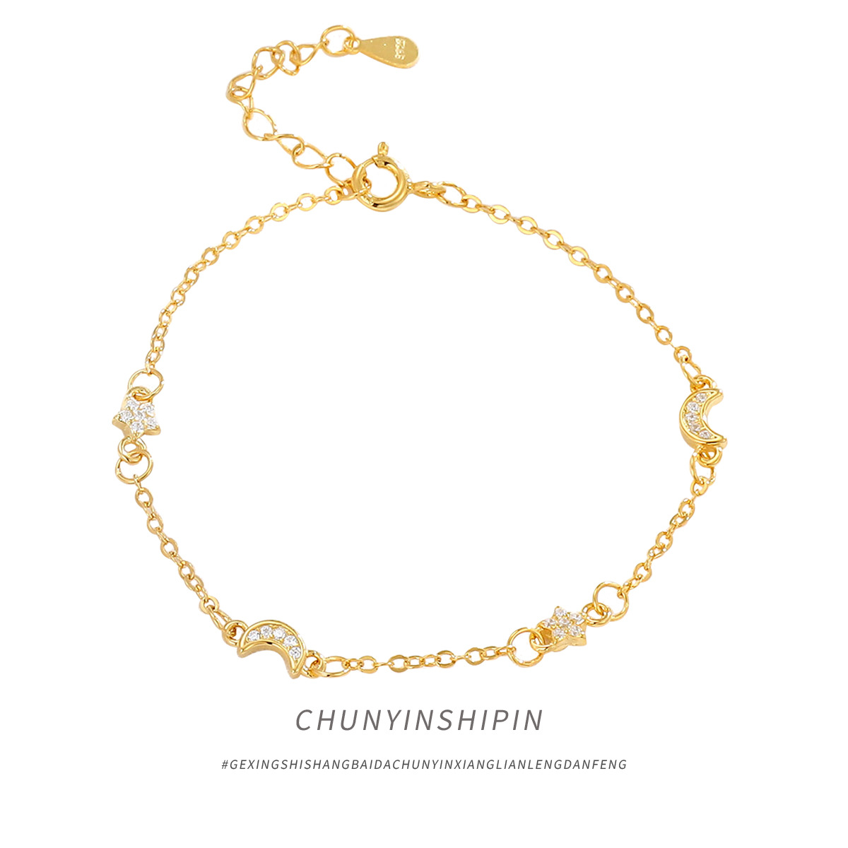 s925 スターリングシルバー星と月ブレスレットライト高級ニッチジュエリー気質多用途星と月ブレスレットファッションアクセサリー女性のための
