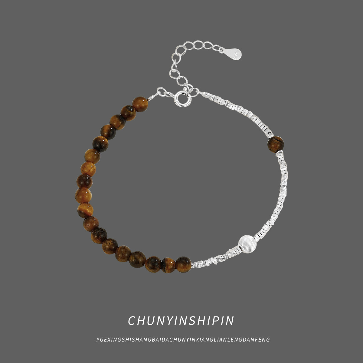 S925純銀百合砕銀虎眼石ブレスレット小衆気質アクセサリー