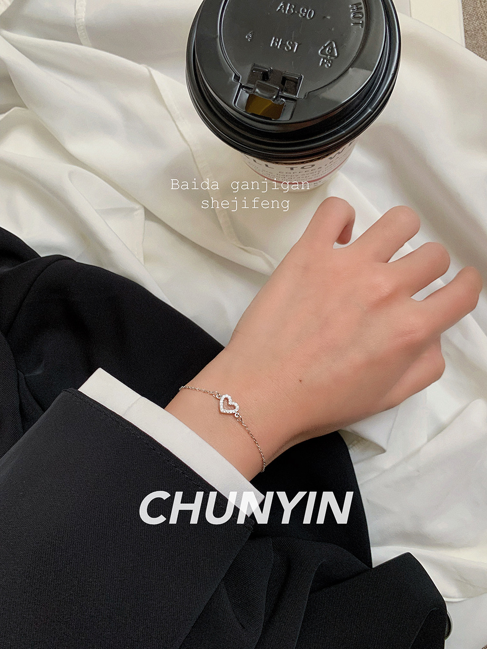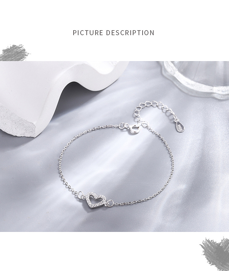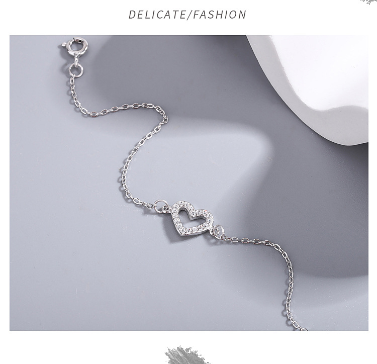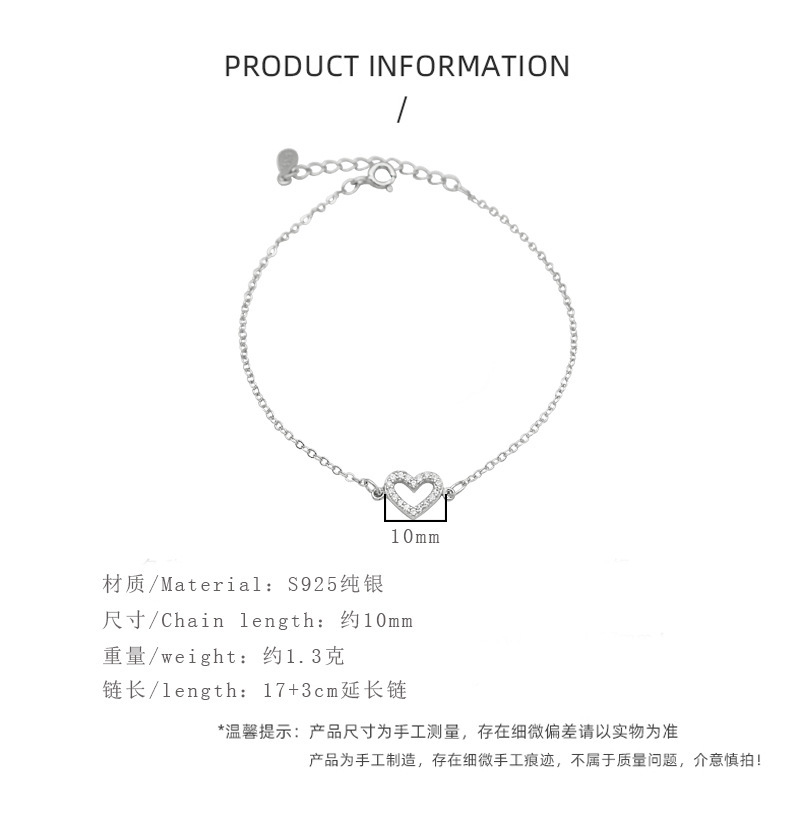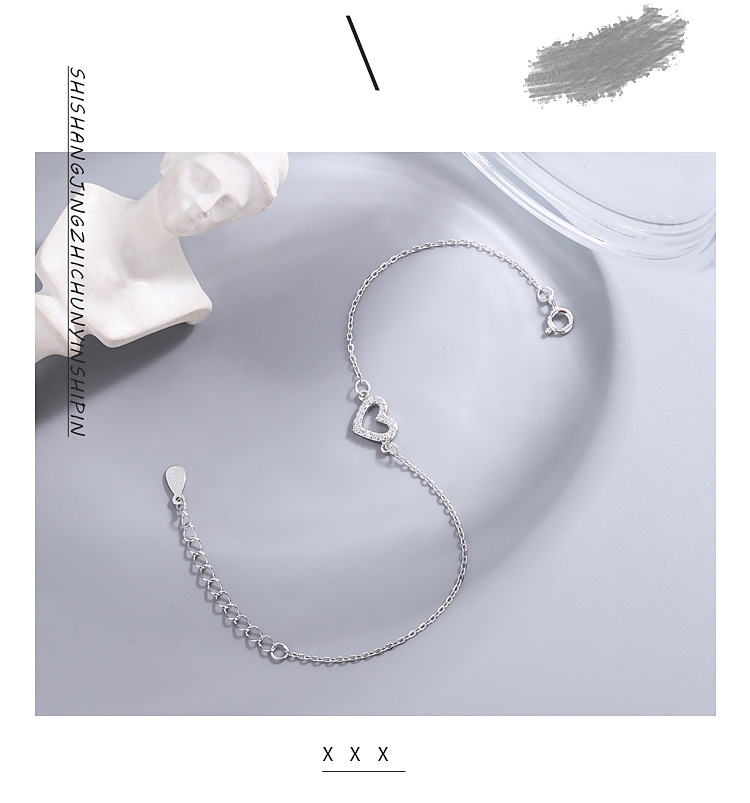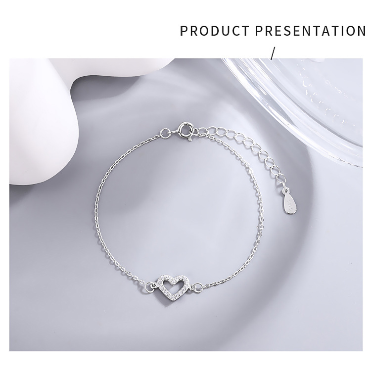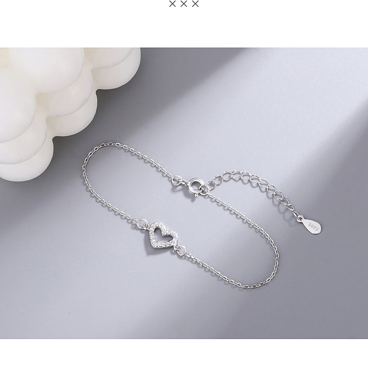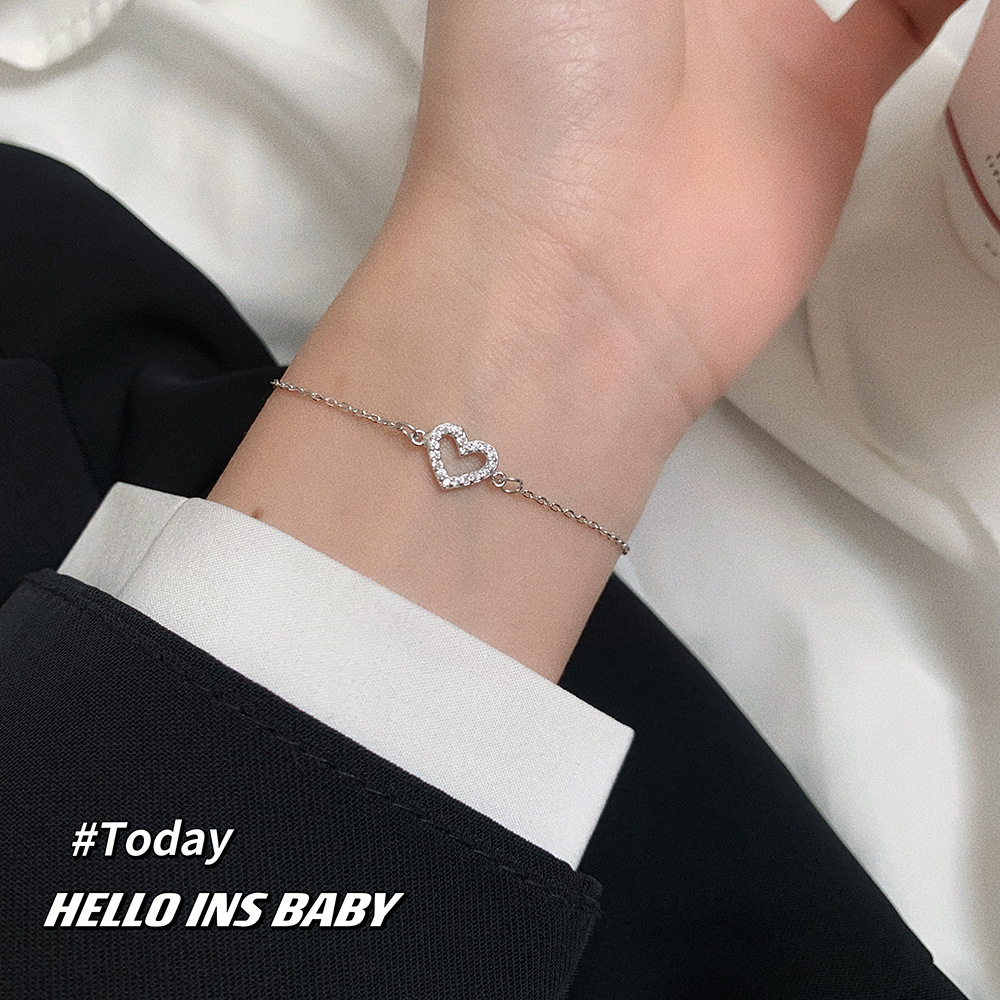 S925純銀満ドリル愛ブレスレット韓国版シンプル文芸女子モデルジルコン桃心手飾り学生ファッションアクセサリー