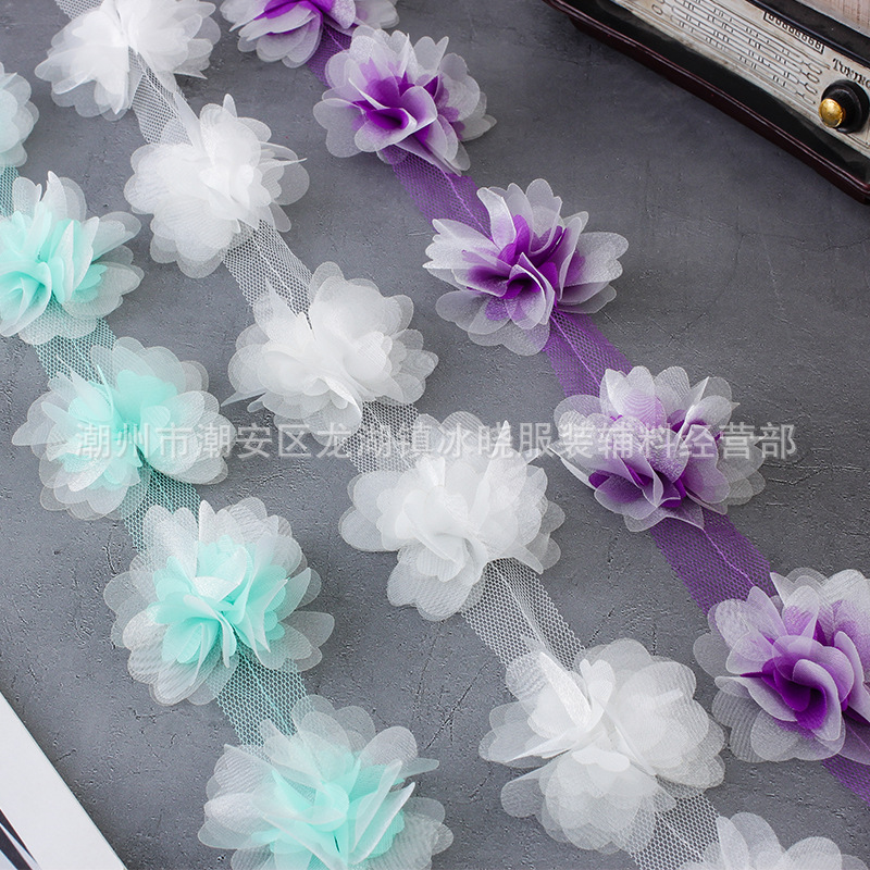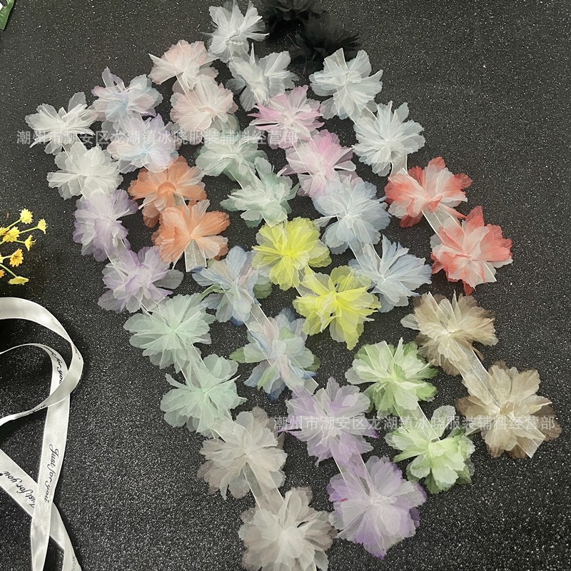 适用于:花朵用途广泛适用:服装婚纱辅料、演出舞蹈服、家居饰品装饰、泳衣泳帽、教室、商场、芭比配件,网纱裙、饰,宠物围脖,胸前装饰,裙摆、娃衣裙、童装、舞蹈裙等各种服装装饰,也可用于装饰窗帘、床幔等其他家居布艺!也可以发挥想象力随意DIY哦!