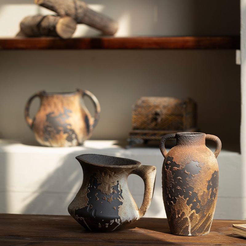 手作りのレトロな寂禅意民宿粗陶缶茶室は古の花芸をまねて花瓶の景徳鎮の陶缶の置物を挿します。