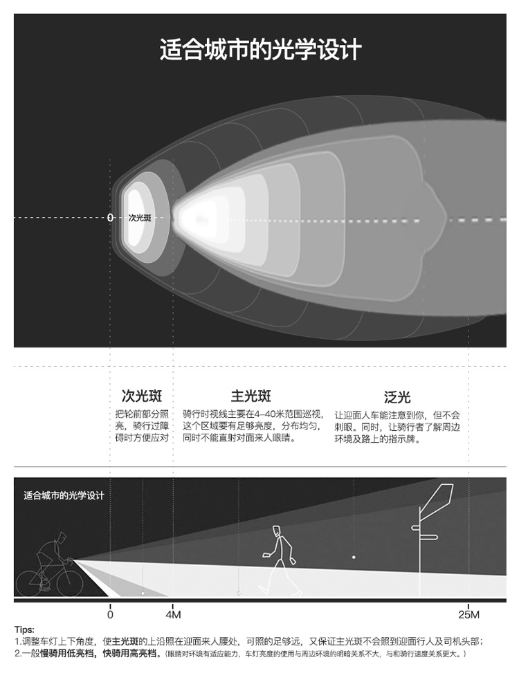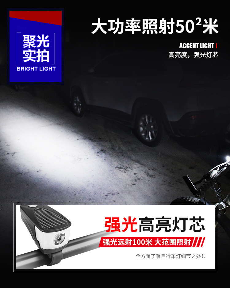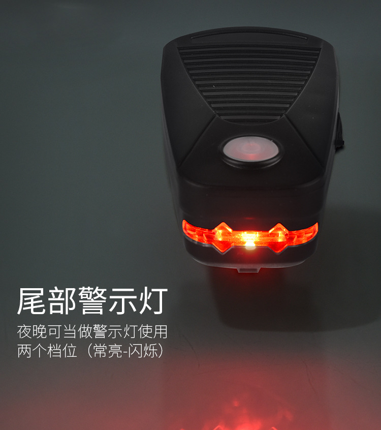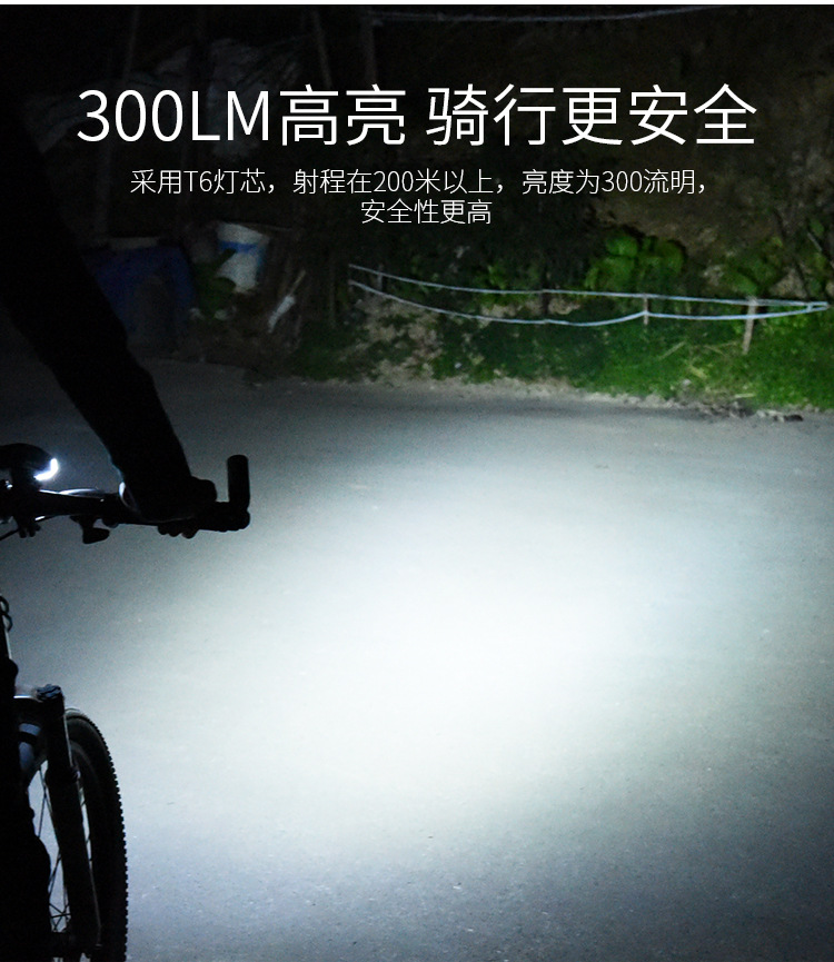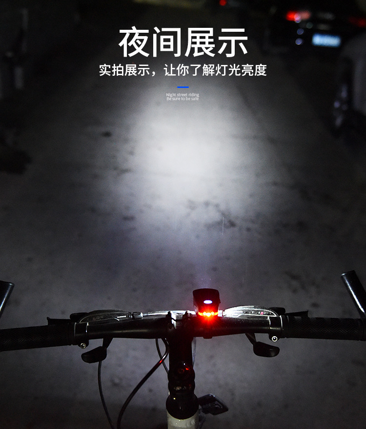 照明模式:按1下强光-弱光-爆闪 双击尾灯常亮再双击快闪再双击关闭 长按2秒打开SOS模式前灯尾灯一起闪烁