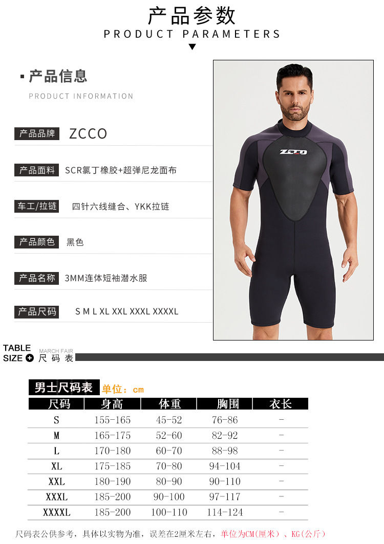 Zcco新型3mm半袖ウェットスーツ男性用ウェットスーツ厚手保温ウェットスーツ女性用防寒サーフィンスーツ