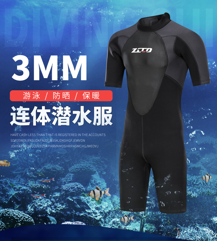 クロスボーダー新型3mmウェットスーツ半袖男女モデルワンピースウェットスーツ防寒保温シュノーケルサーフィン冬水着