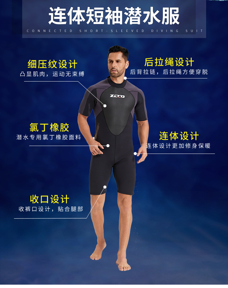 ZCCOクロスボーダー新型3mmウェットスーツノースリーブ男連体保温サーフスーツウェットスーツ防寒シュノーケル冬水泳