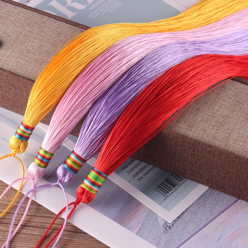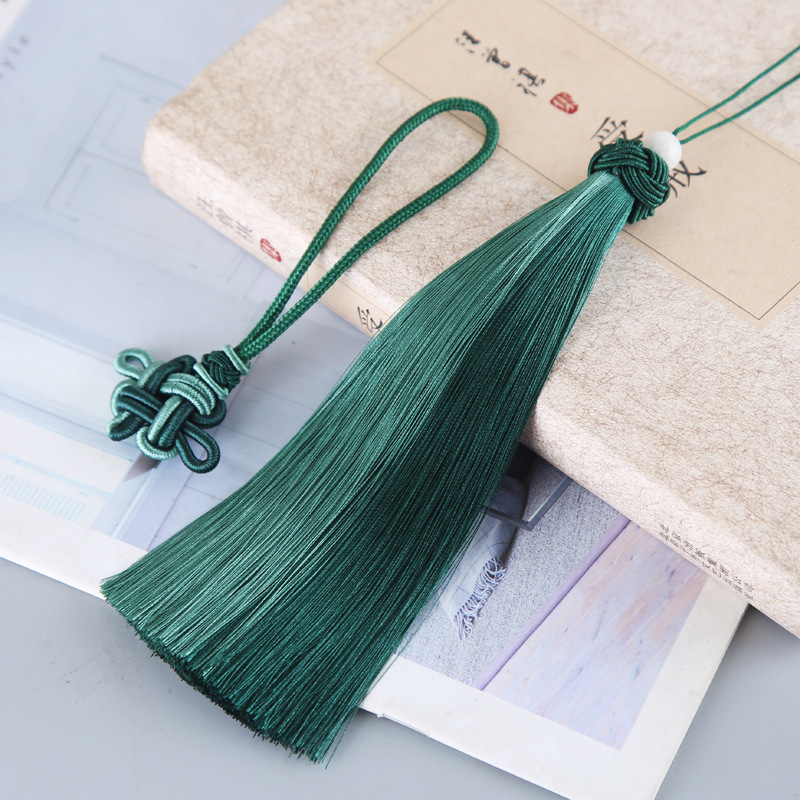 何谓流苏,说到这里大家可能也不明白。最简单的流苏是将一把绳子弯曲,形成一把穗子,挂在一根悬着的绳子上面做成流苏。随着时间的推移,出现了木质的流苏头,这个流苏头外面用布或其它饰品包裹起来,在头的中心凿一个洞,中间可以穿过一根绳子,连接头和穗子,并可以将流苏挂起来。当然,到了21世纪,随着社会的发展,流苏也得到了进一步的发展,流苏的每一个部分都可以采用不同的设计,制造出不同的工艺效果。
