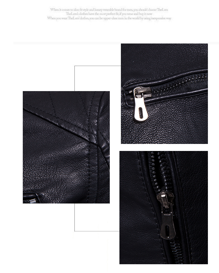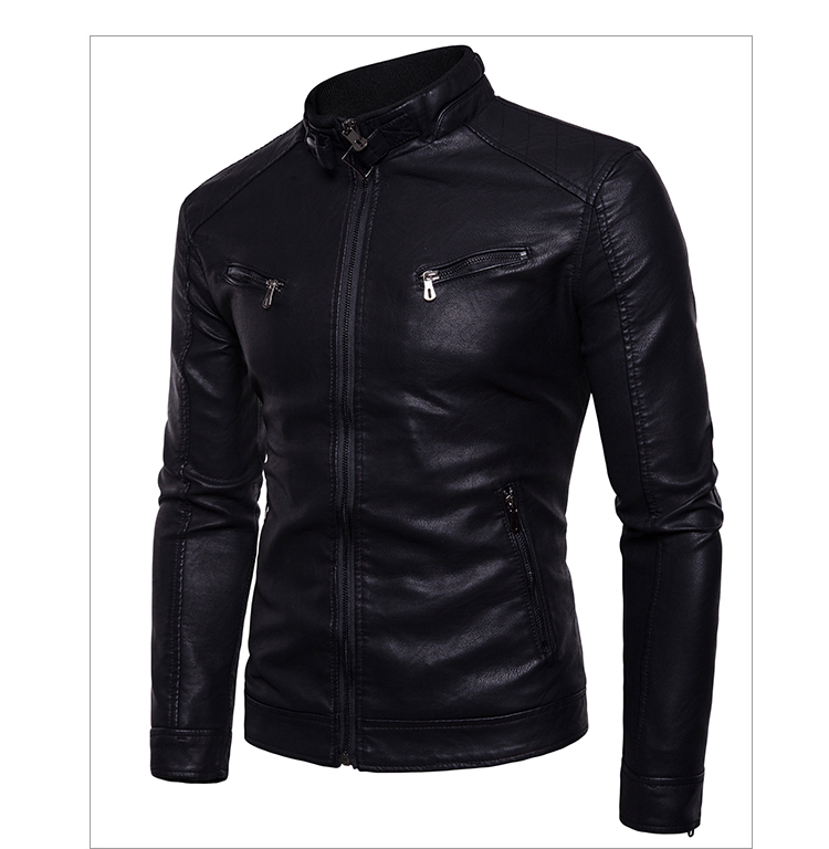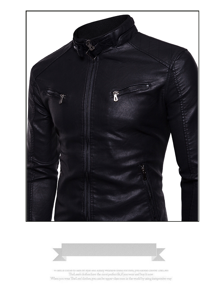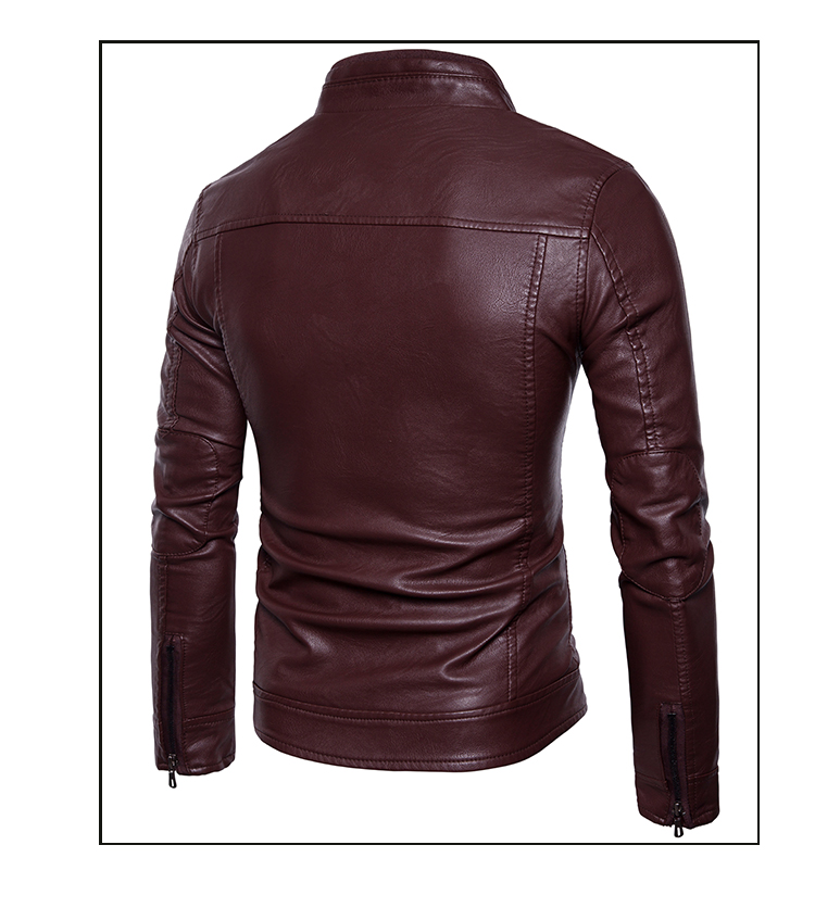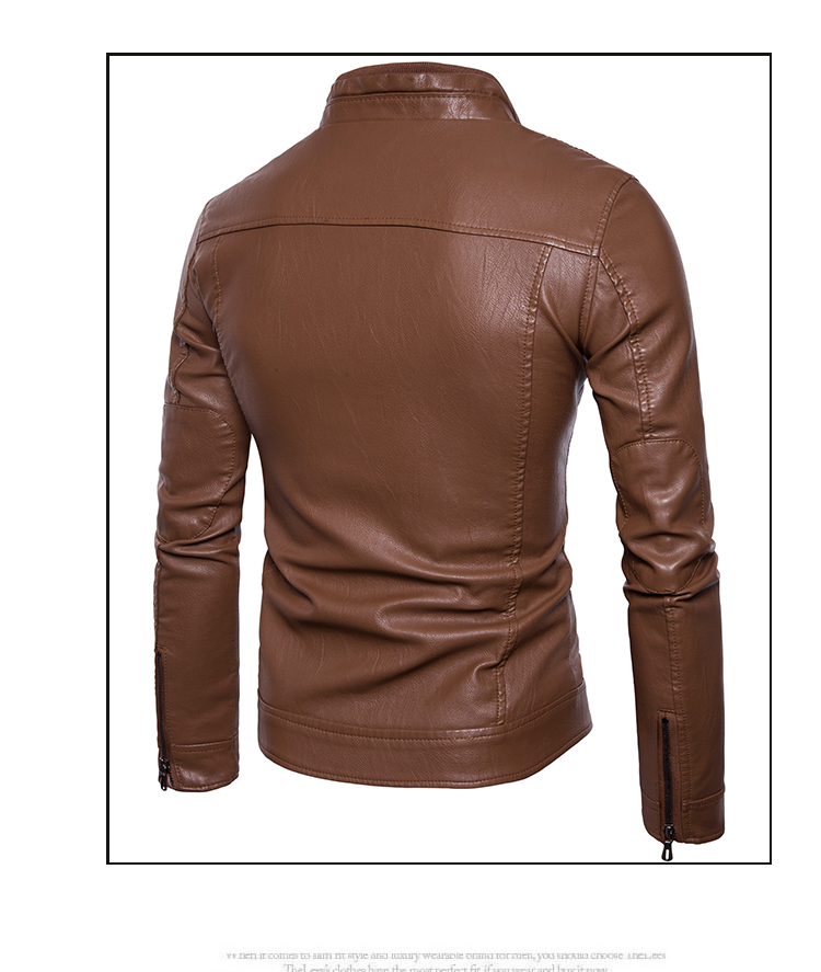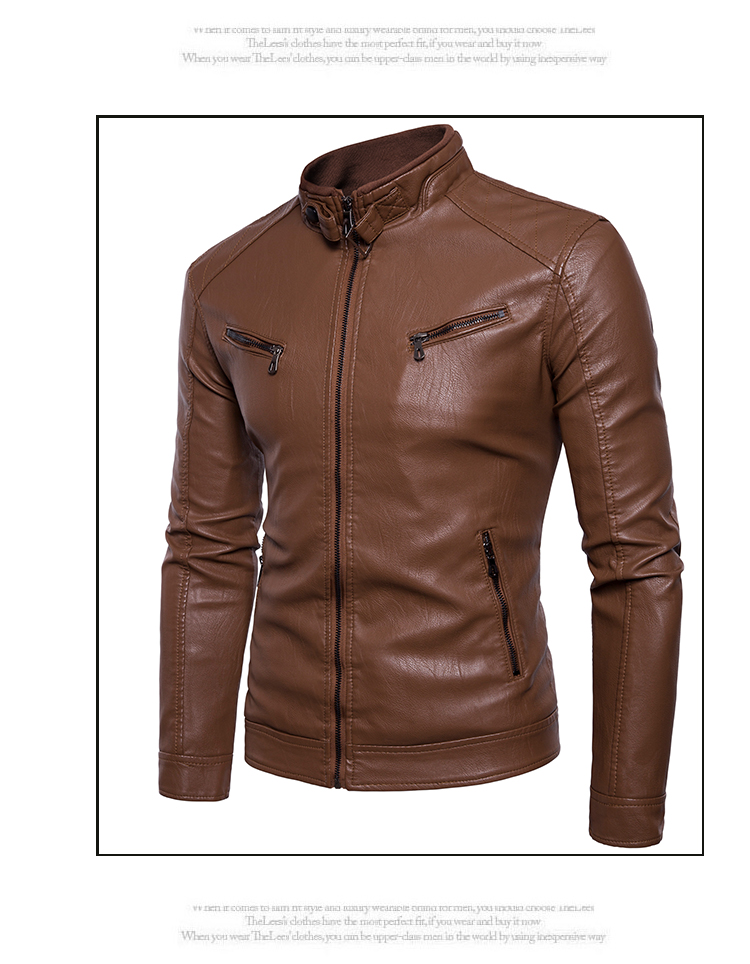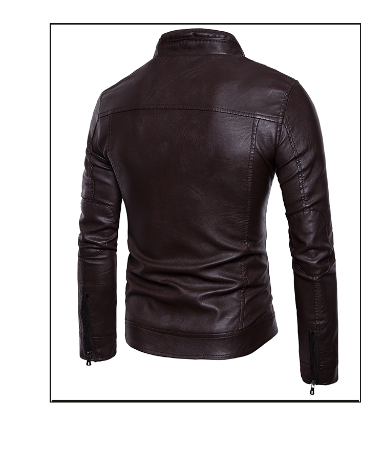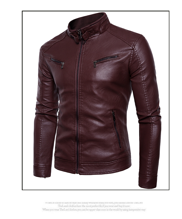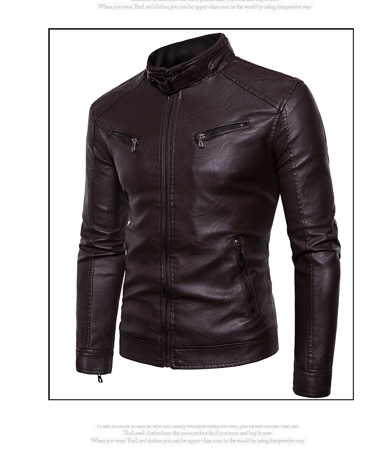 外国貿易冬ビジネス紳士保温ジッパーカーディガンポケット装飾pu革衣立襟修身革ジャケットp55