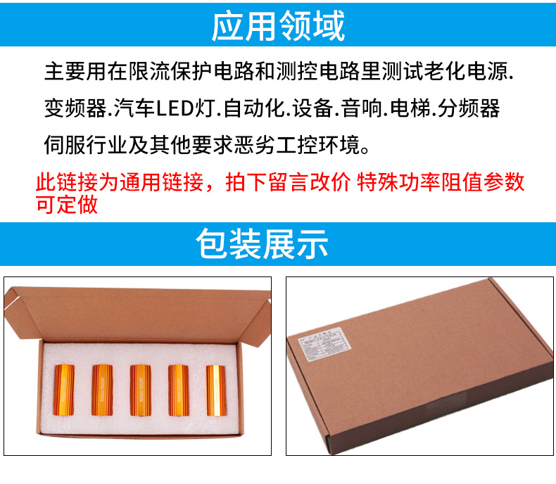 源メーカー現物金属抵抗自動車ウインカー抵抗25W50W100Wゴールドアルミシェル抵抗