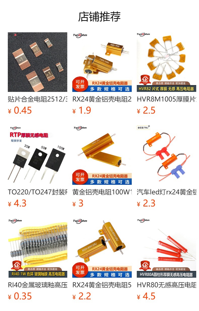 TO220/TO247パッケージハイパワーrtp35w50w100w1k2 r5rサンプリング精密厚膜无感抵抗