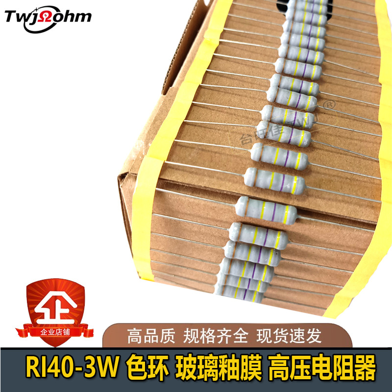 RI40-3W高圧ガラス釉薬抵抗10m/20m/510kオーム金属ガラス釉薬高圧パルス抵抗