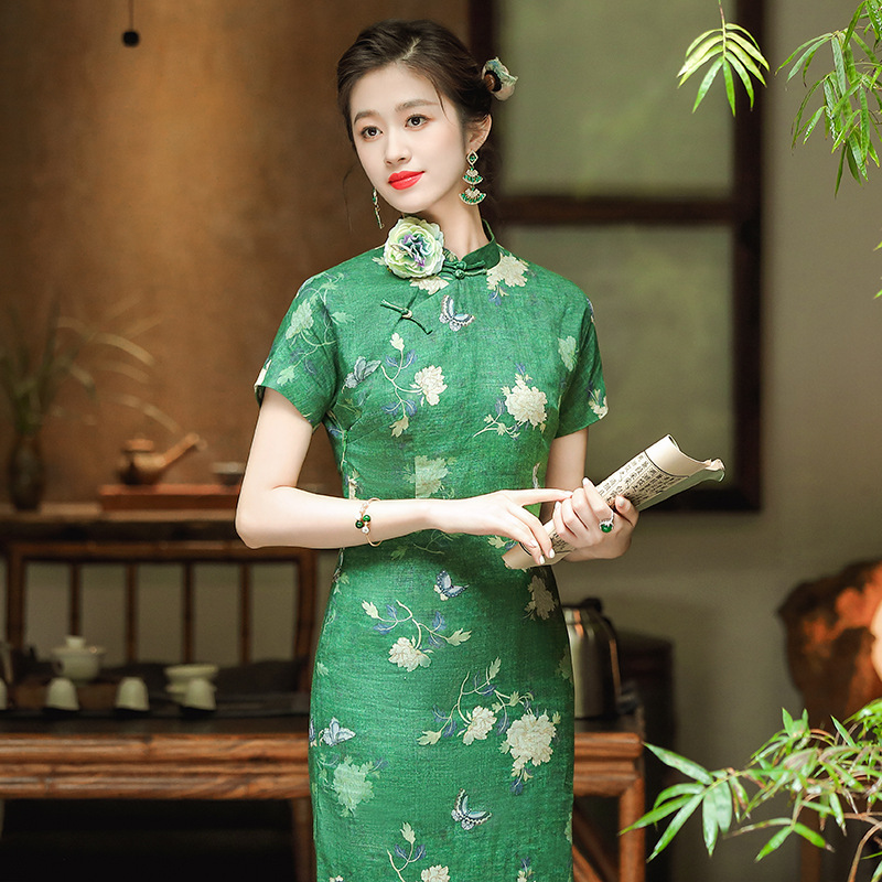 中国風女装チャイナドレス夏の新型レトロ綿麻日常改良90095