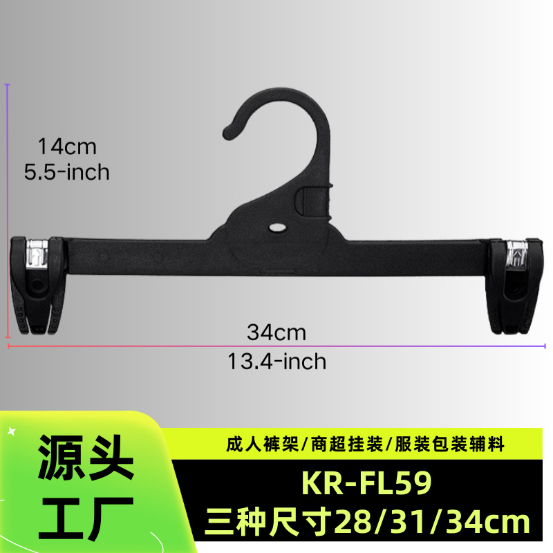 外国貿易専用34cmビーチパンツハンガー、男性用・女性用スカート用滑り止めプラスチック製パンツハンガー、大人用衣料品店展示用