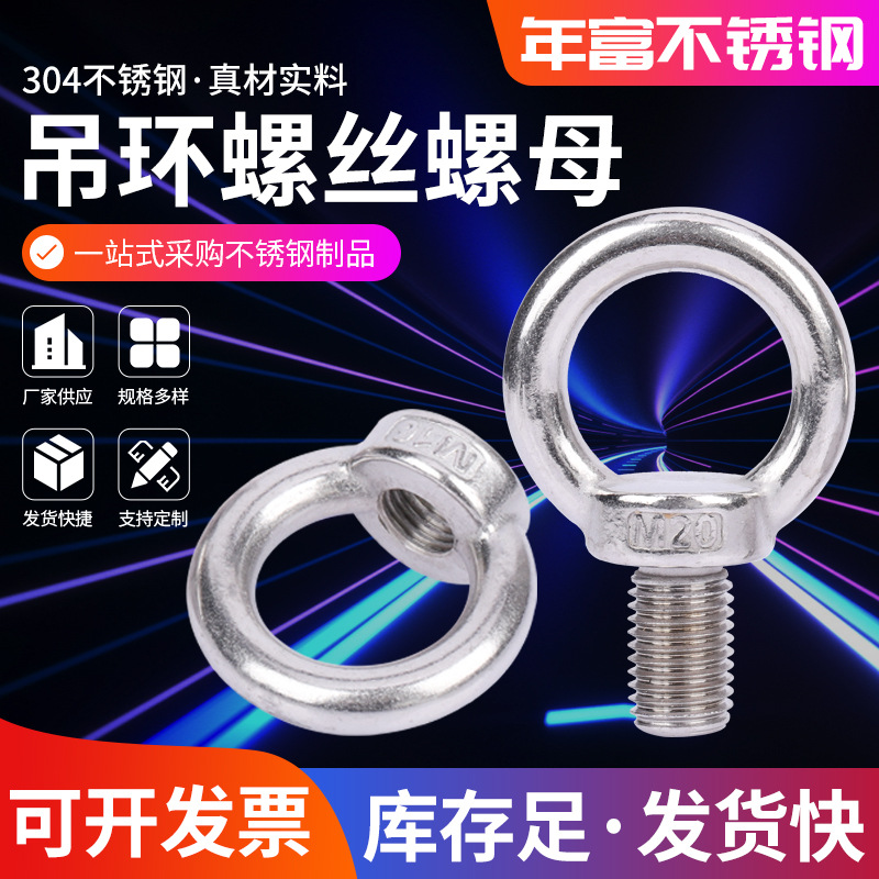 304不锈钢吊环螺栓国标m18高强度船用环形索具起重吊环螺丝螺钉