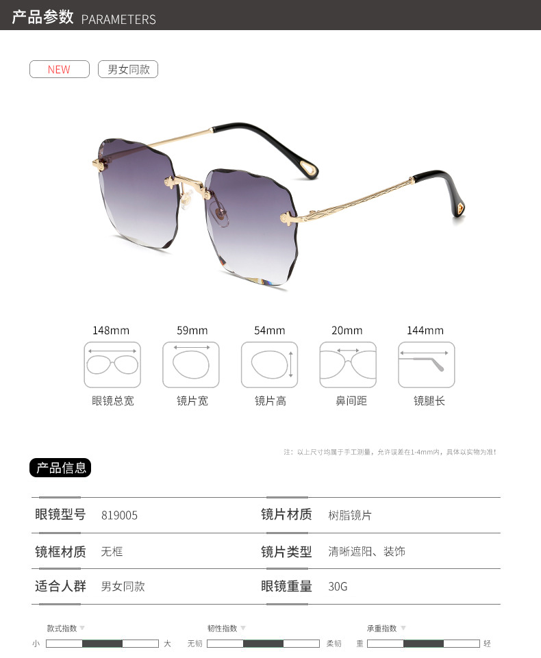 | 双梁飞行员墨镜 | 无框切边 | 素颜平光镜 | ||