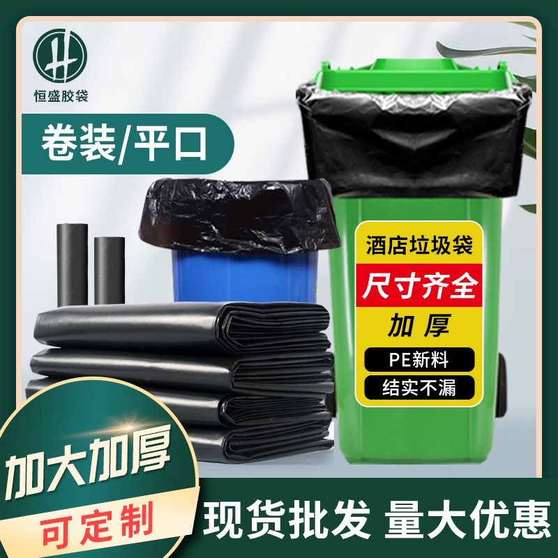 家庭用黒色大型厚さ平口大ゴミ袋ホテルホテル厨房用使い捨てプラスチックゴミ袋
