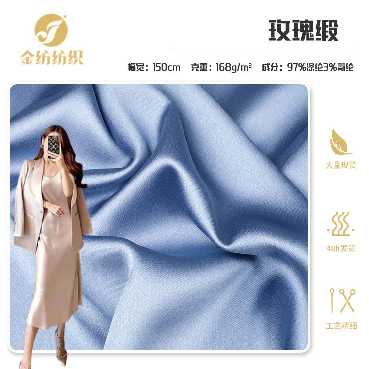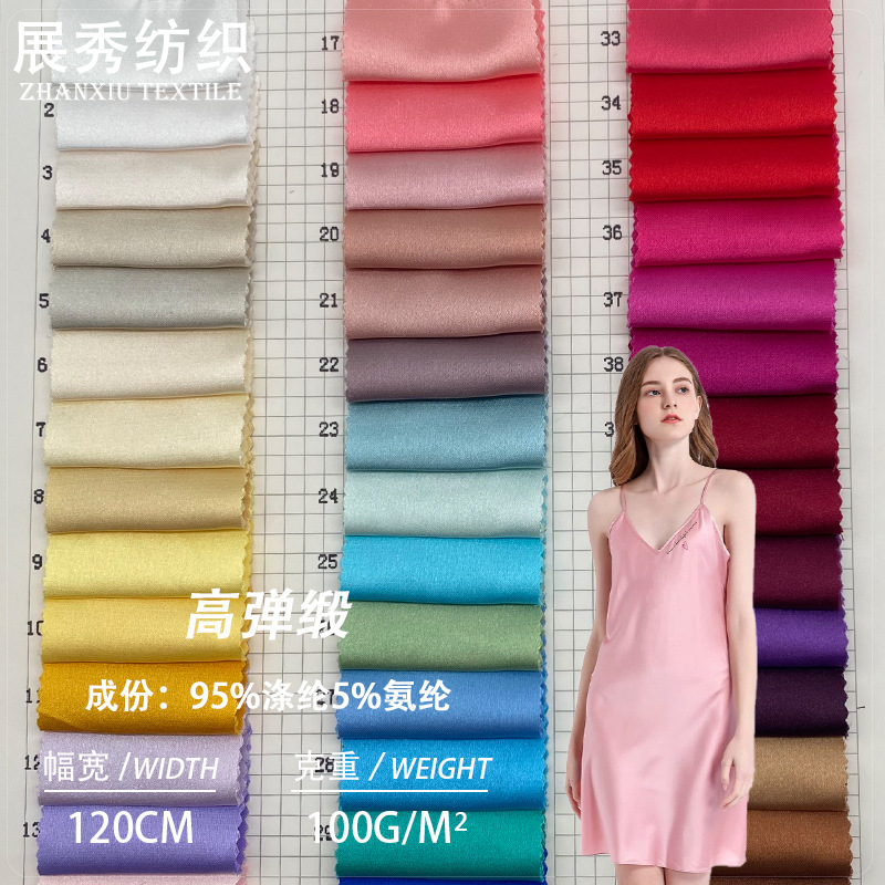 弹力涤纶平纹色丁布 高弹缎哑光布料 100g睡衣旗袍里布服装面料