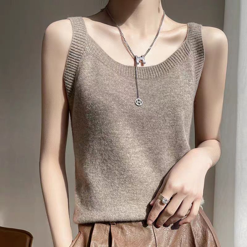 キャミソールの女性2025夏秋の新型U襟のスリムな中にシンプルなセーターを着てシャツの上着を編む