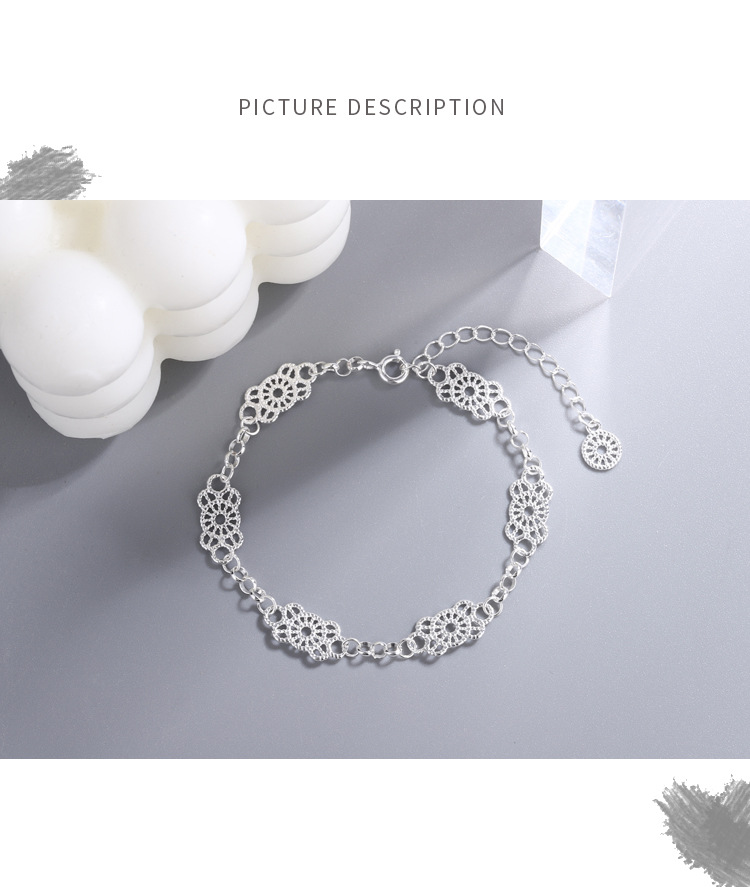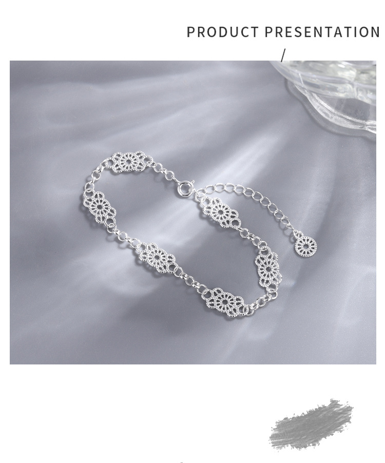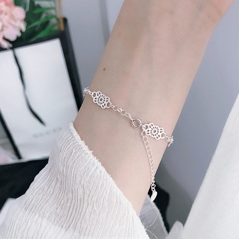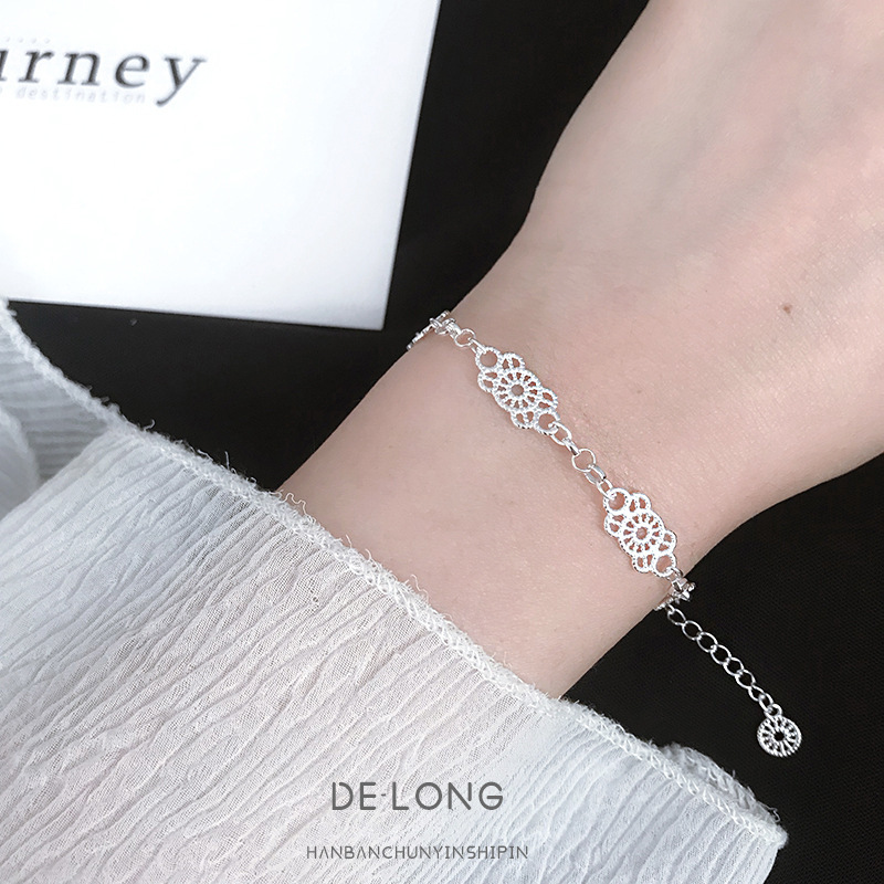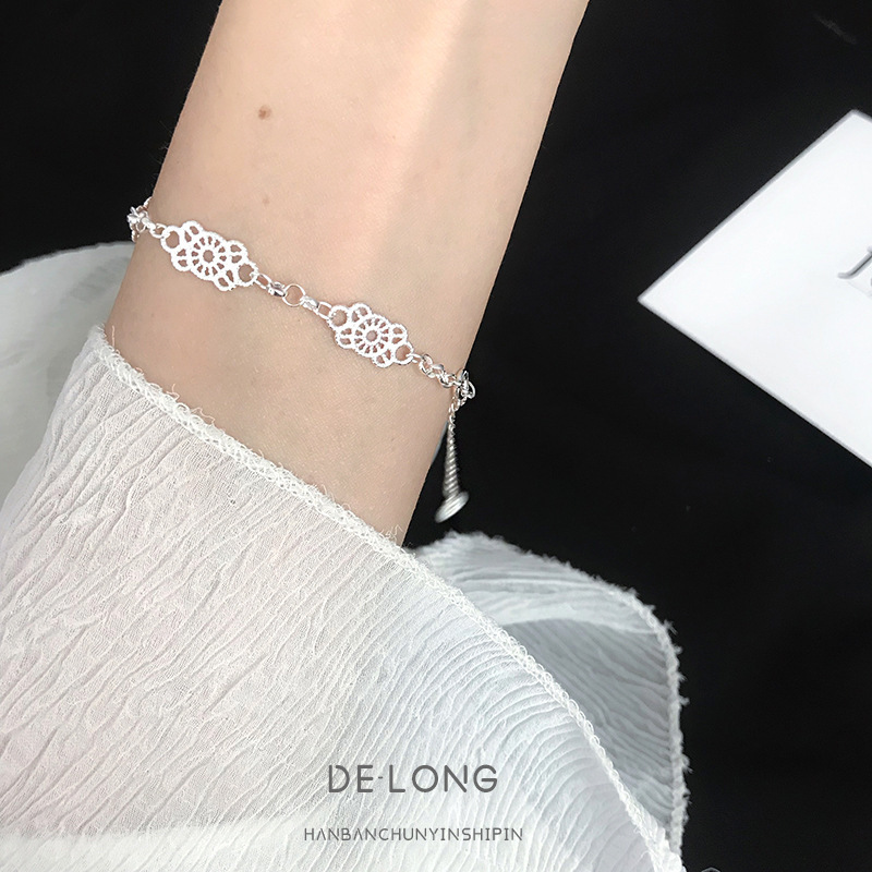 ティチS925純銀韓国東大門レースブレスレット女性の優雅でシンプルな透かし彫りレースファッション気質の手飾り