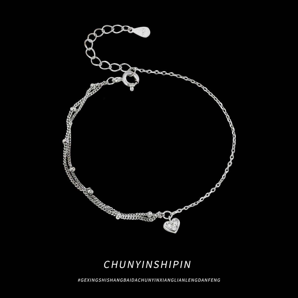 s925 スターリングシルバー多用途ラブダブルブレスレットニッチ気質ジュエリーシンプルなスタックスタイルピーチハートブレスレットアクセサリー女性用