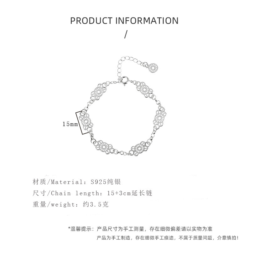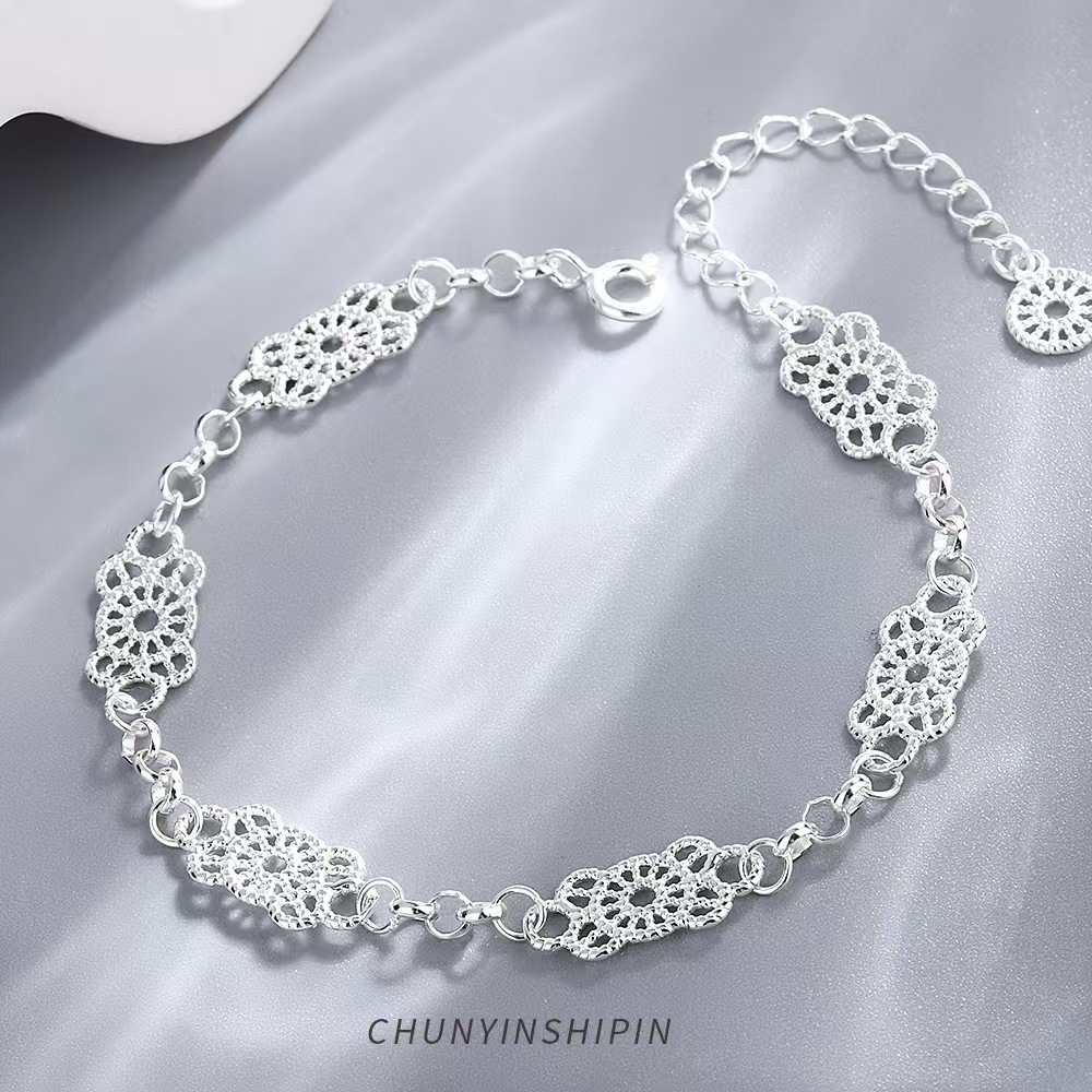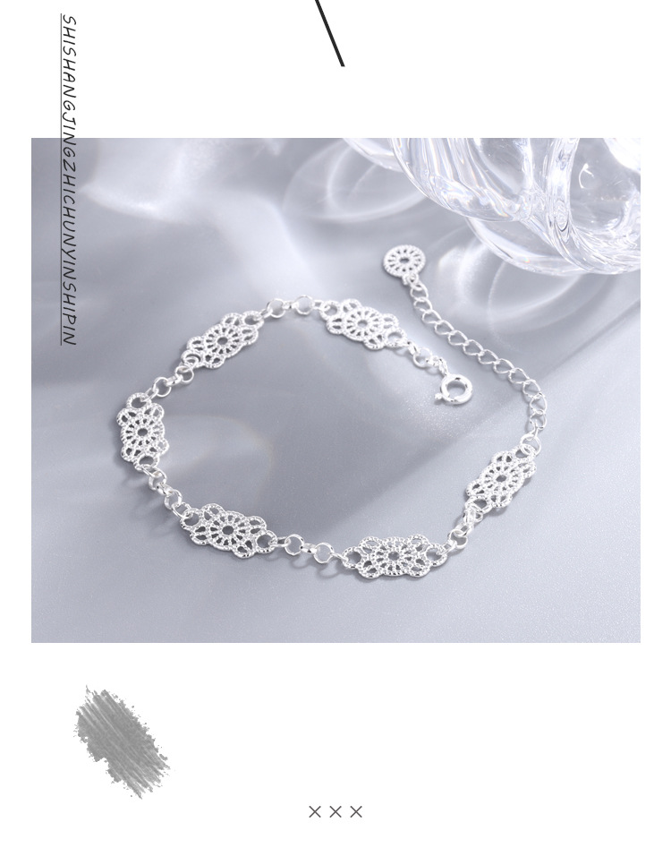 持恒韓国韓国韓国版S925純銀透かし彫りの花のブレスレット